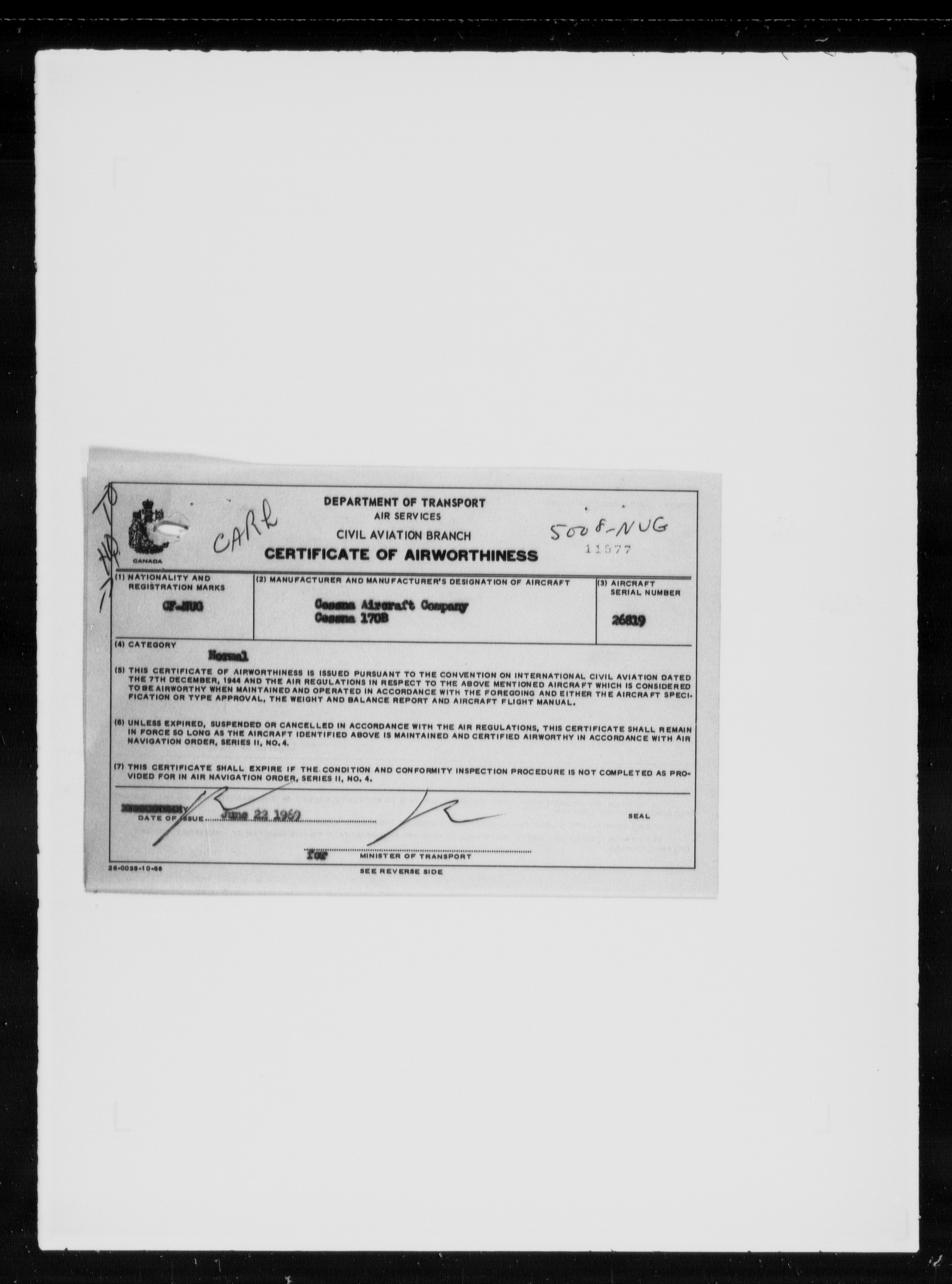 Department of Transport : Civil aircraft registration, inspection and operation files, block 5008, 1920-1986 - 8007