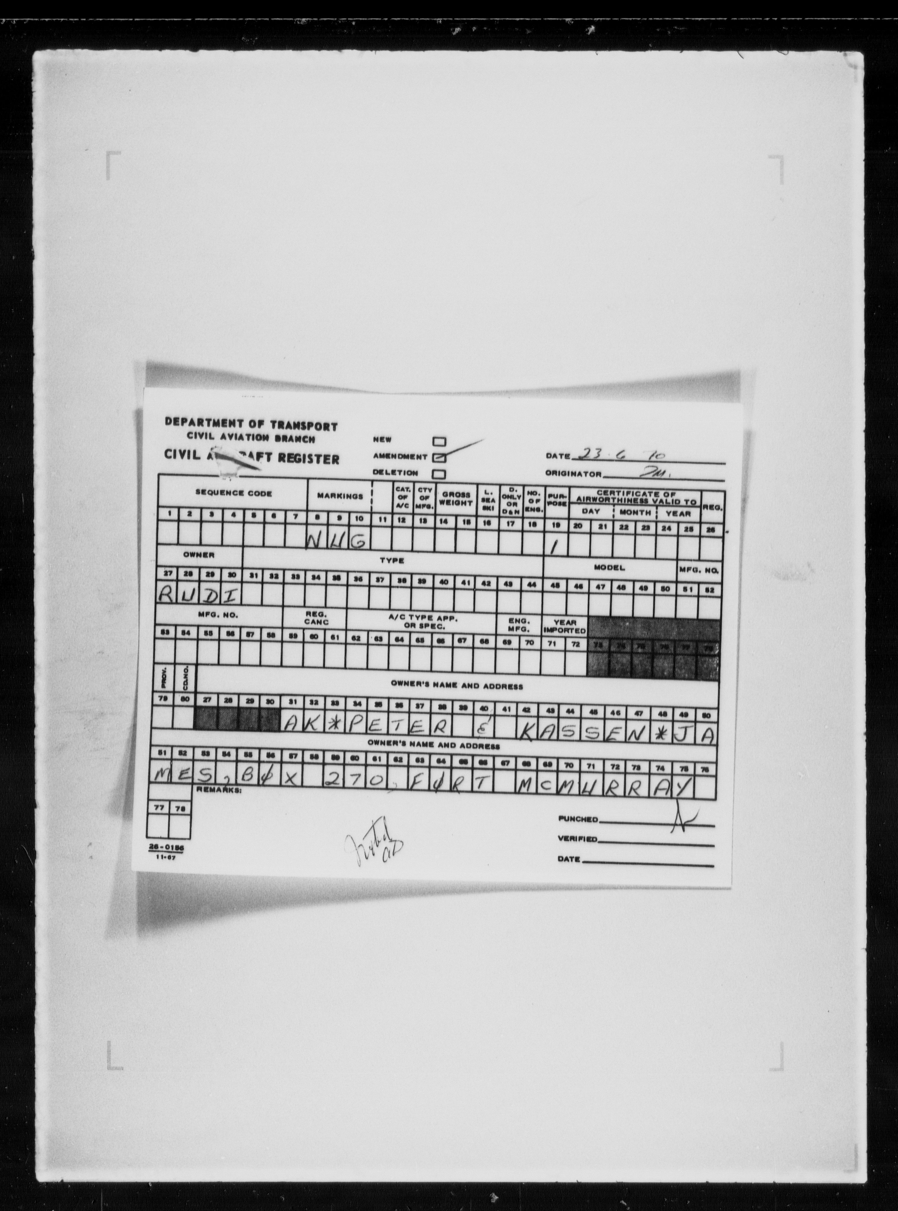 Department of Transport : Civil aircraft registration, inspection and operation files, block 5008, 1920-1986 - 8007