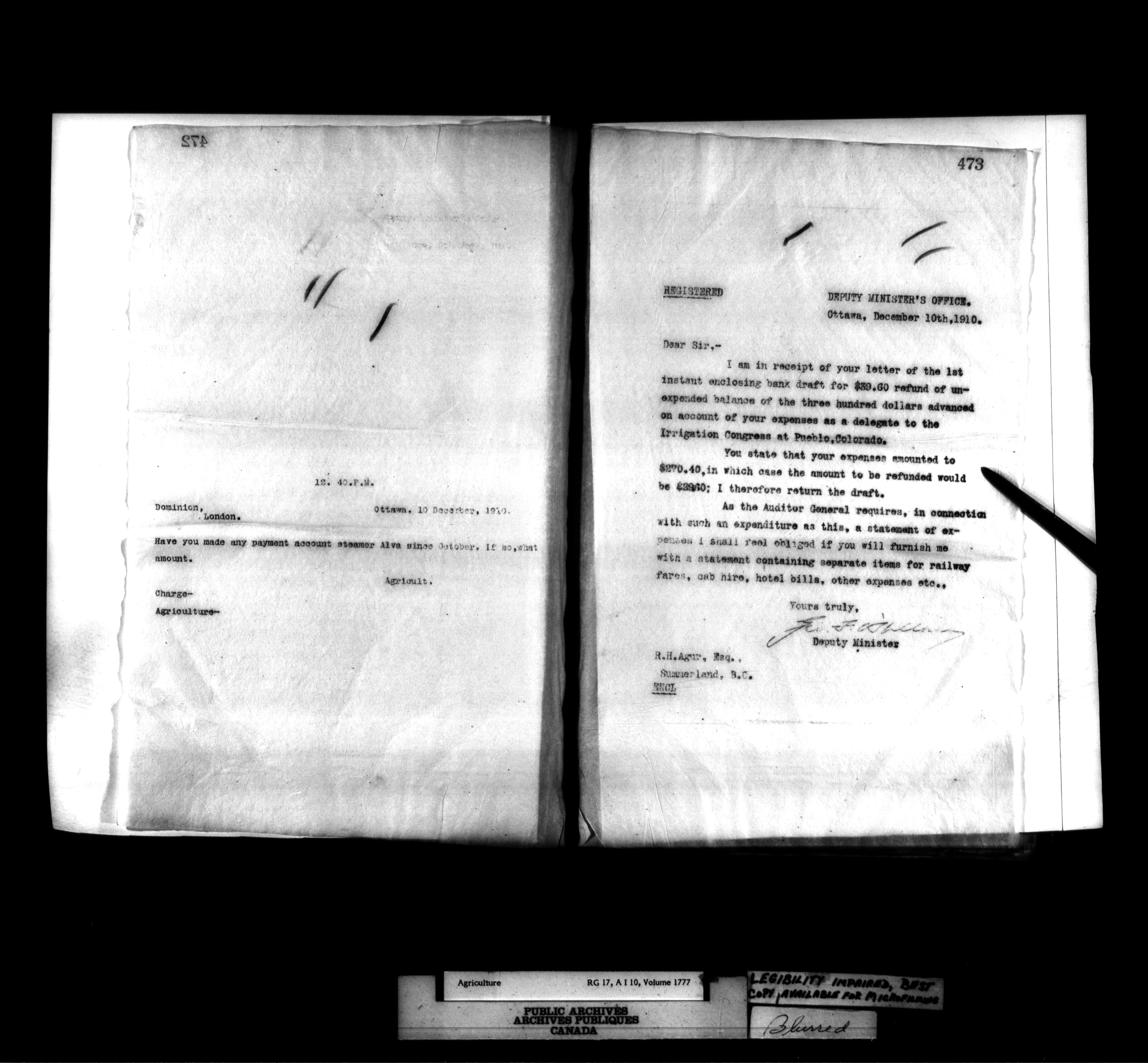 Department of Agriculture : Deputy Minister's letterbooks, 1888-1916 - 801