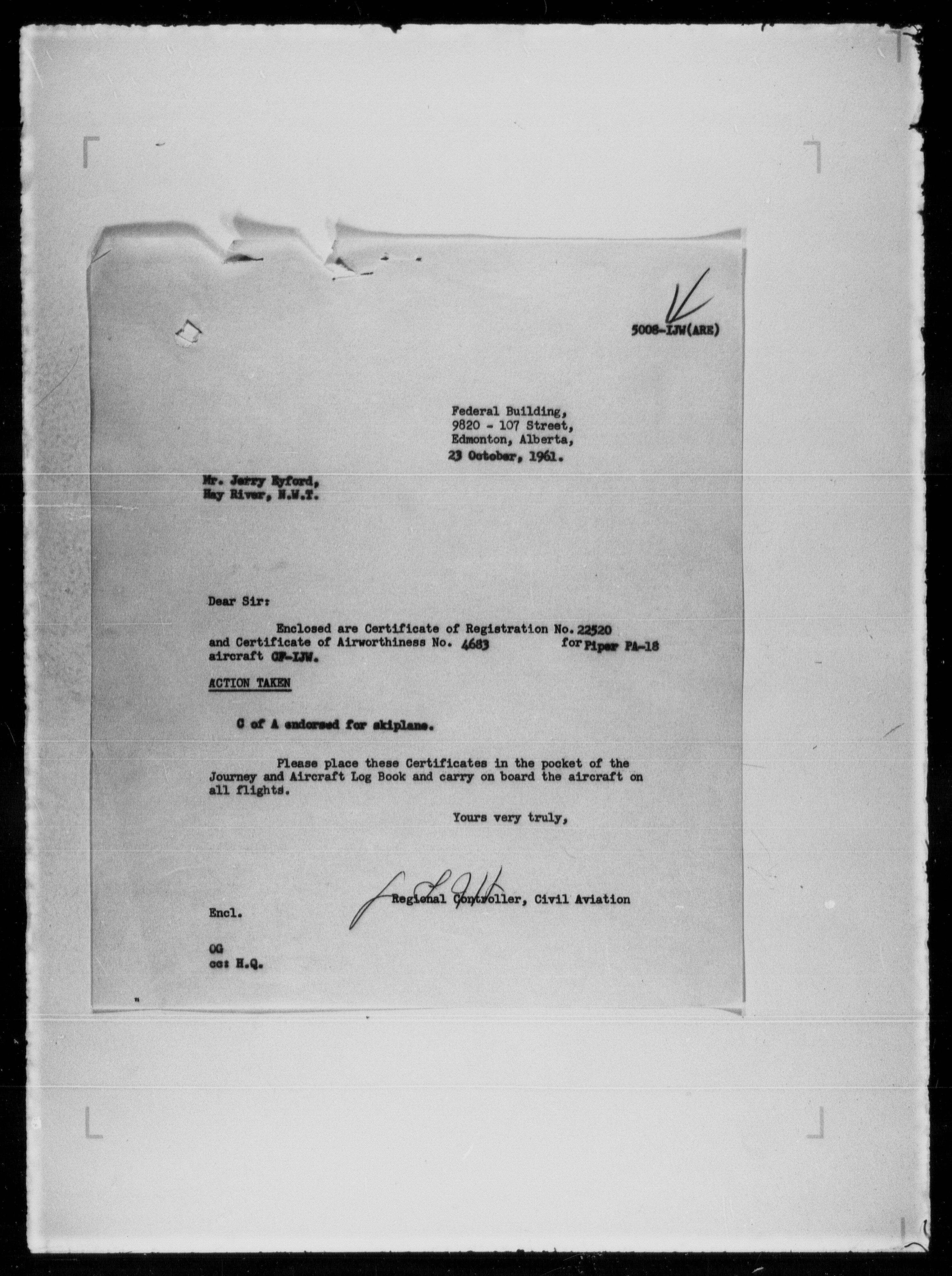 Cancelled Aircraft Registry Files, Series 5008, File I JW to JSN