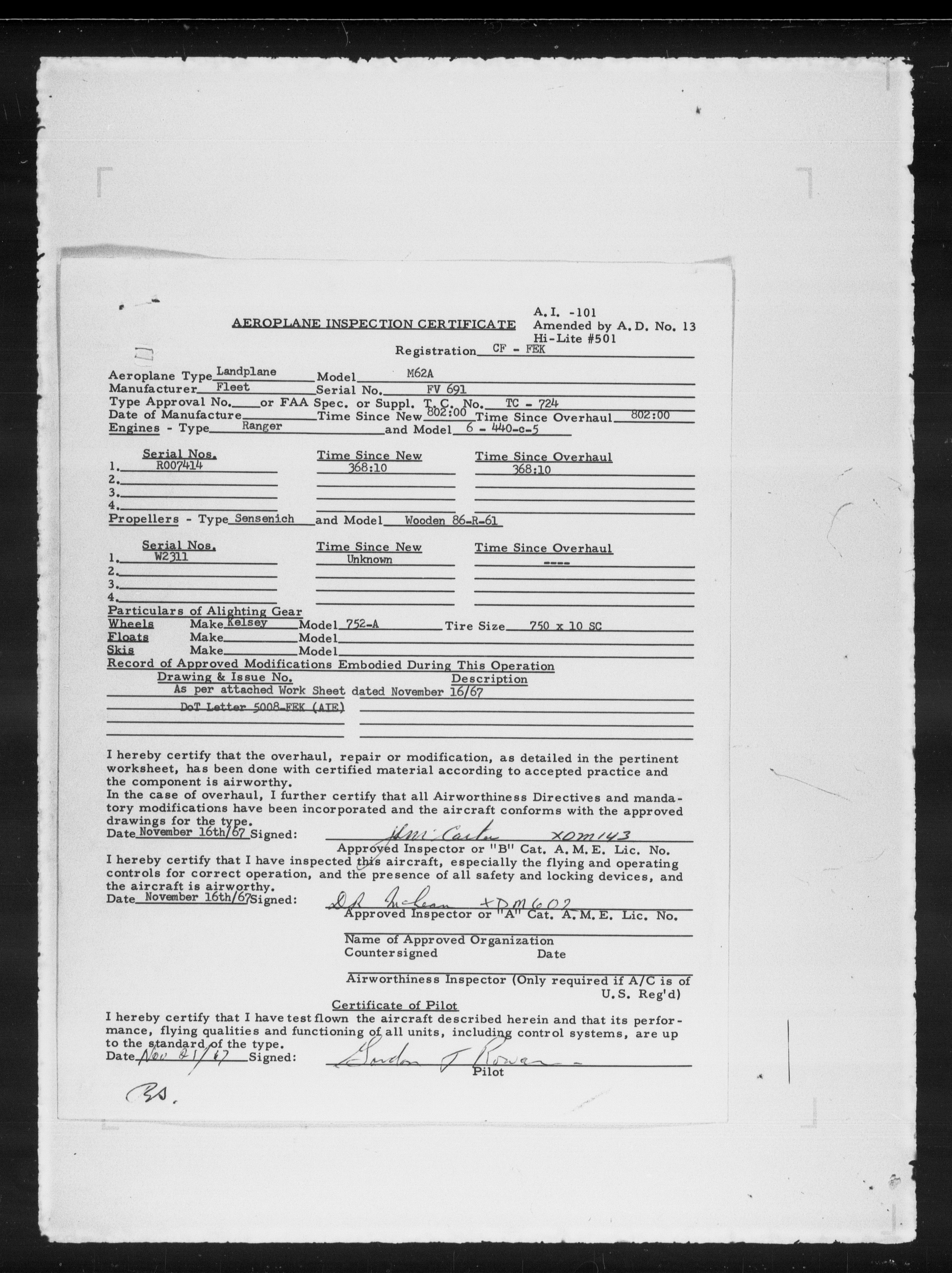 Department of Transport : Civil aircraft registration, inspection and operation files, block 5008, 1920-1986 - 8032