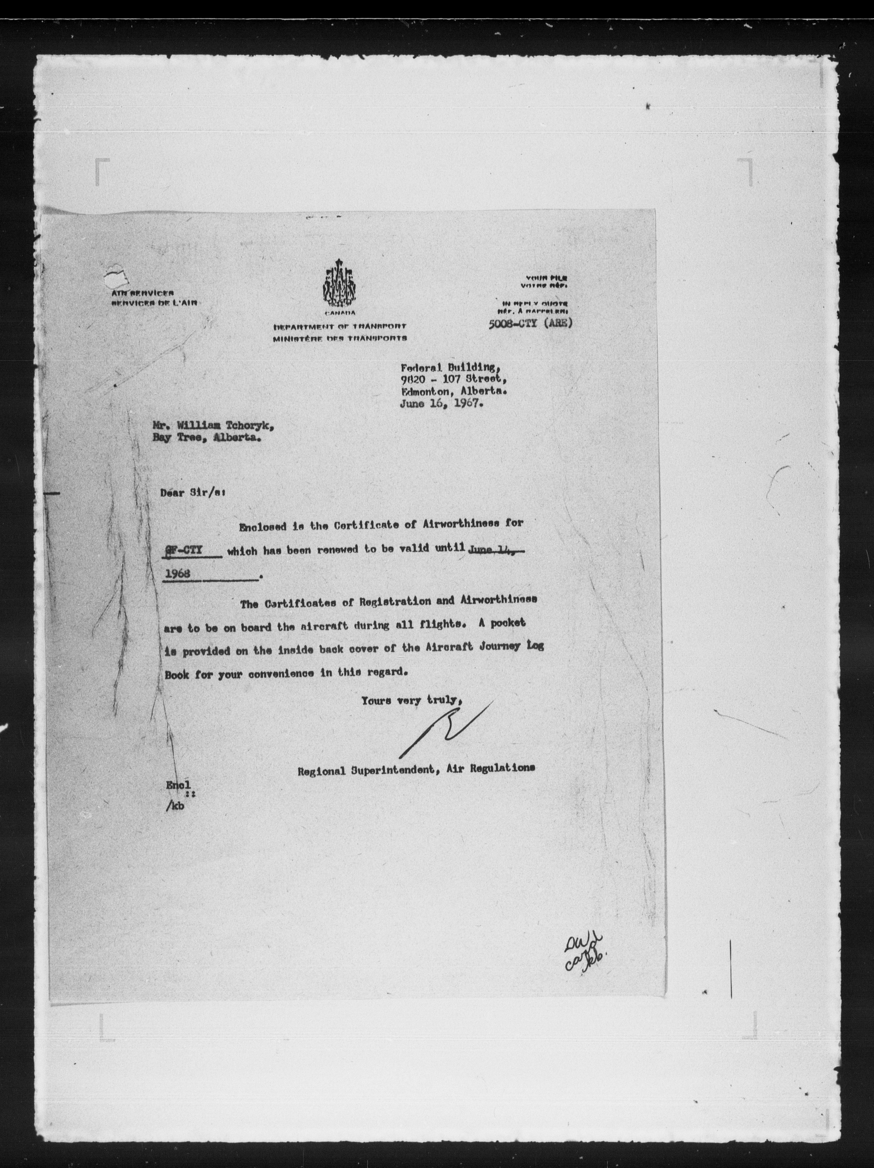 Department of Transport : Civil aircraft registration, inspection and operation files, block 5008, 1920-1986 - 8032