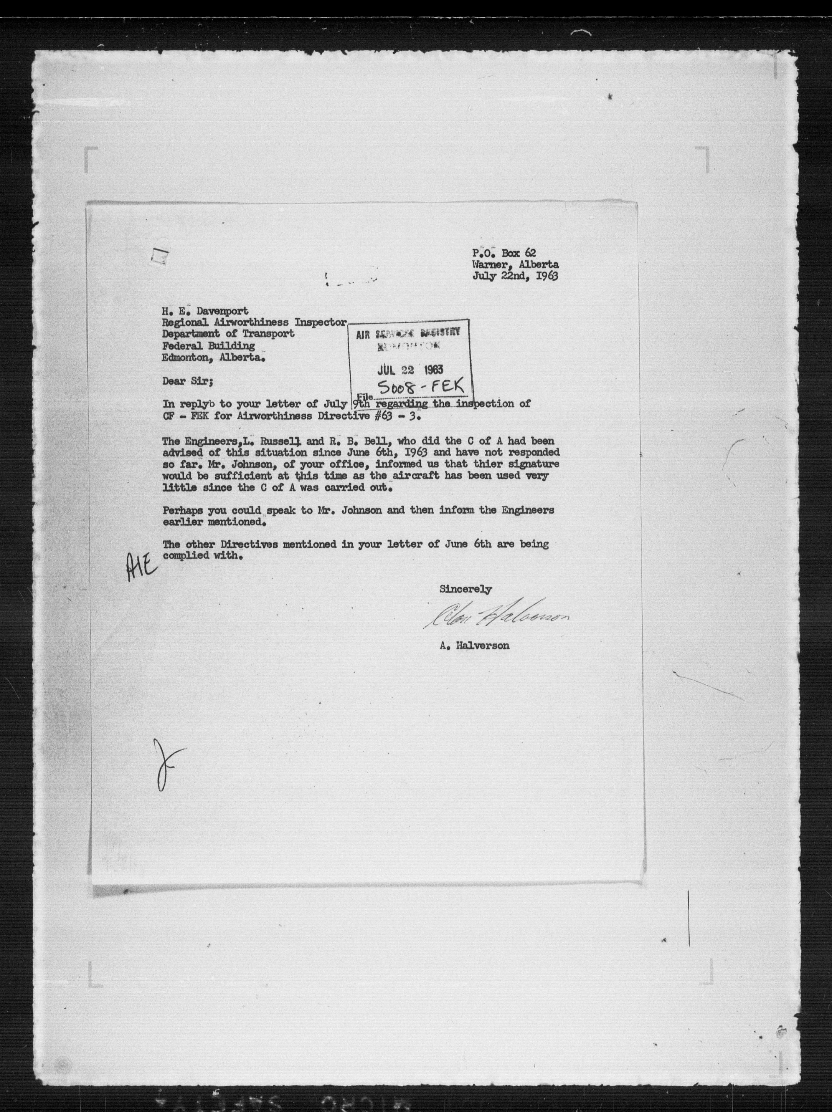 Department of Transport : Civil aircraft registration, inspection and operation files, block 5008, 1920-1986 - 8032