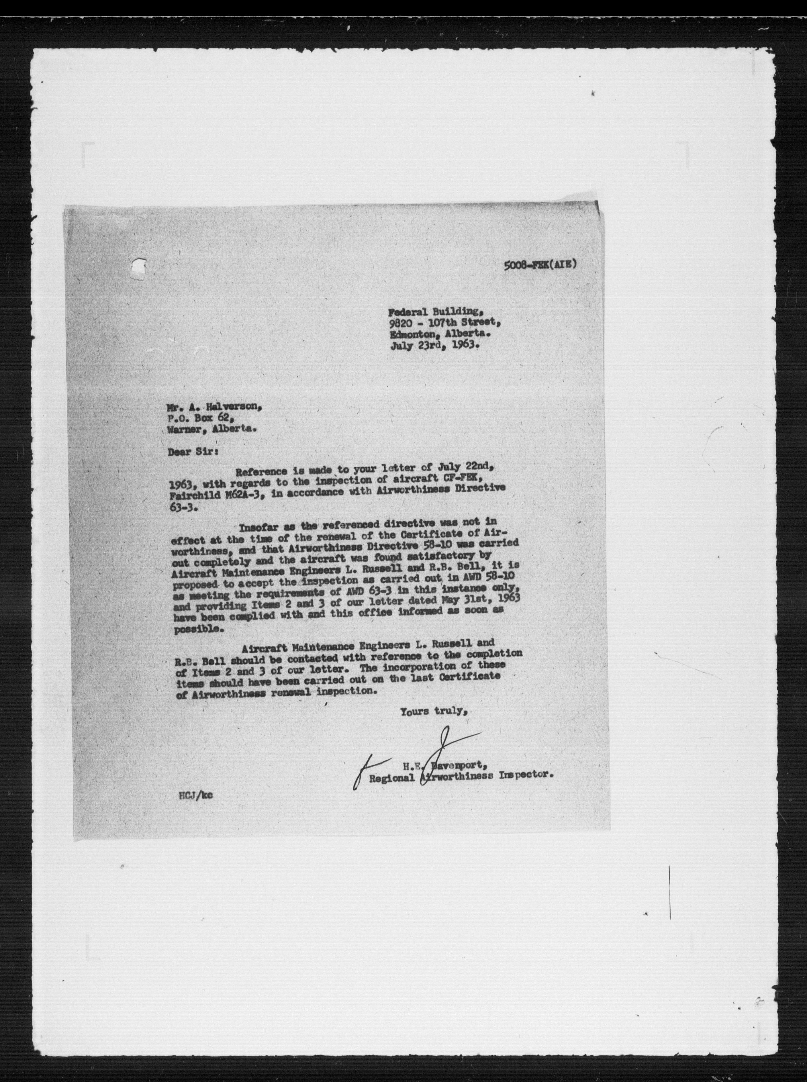 Department of Transport : Civil aircraft registration, inspection and operation files, block 5008, 1920-1986 - 8032