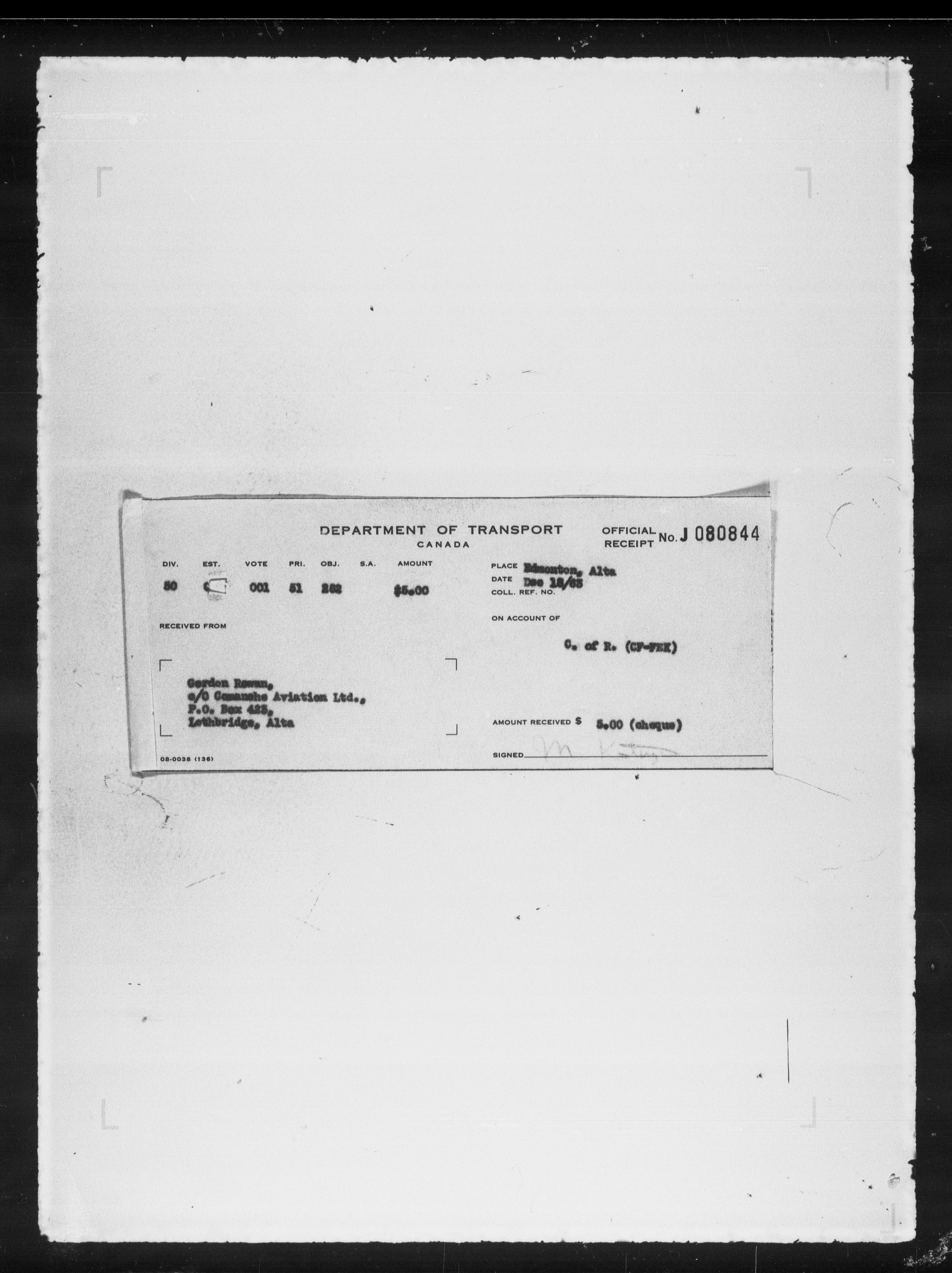 Department of Transport : Civil aircraft registration, inspection and operation files, block 5008, 1920-1986 - 8032