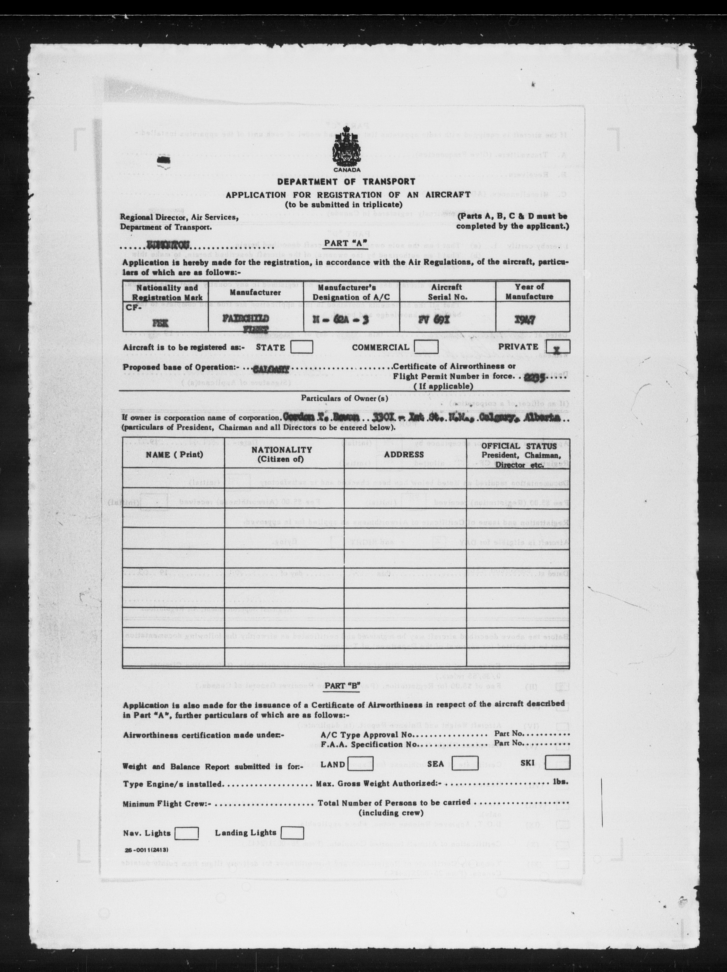 Department of Transport : Civil aircraft registration, inspection and operation files, block 5008, 1920-1986 - 8032