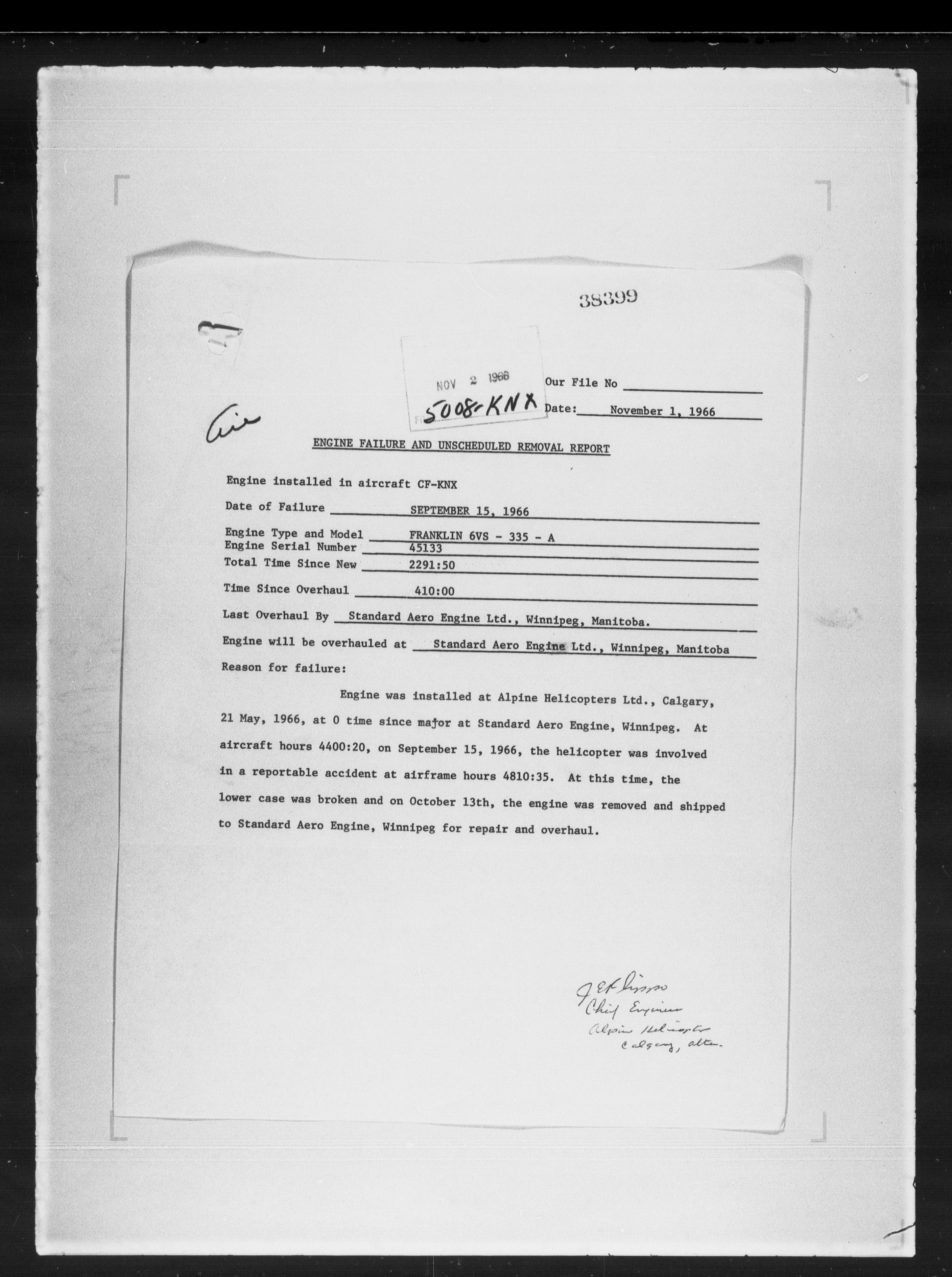 Department of Transport : Civil aircraft registration, inspection and operation files, block 5008, 1920-1986 - 8034