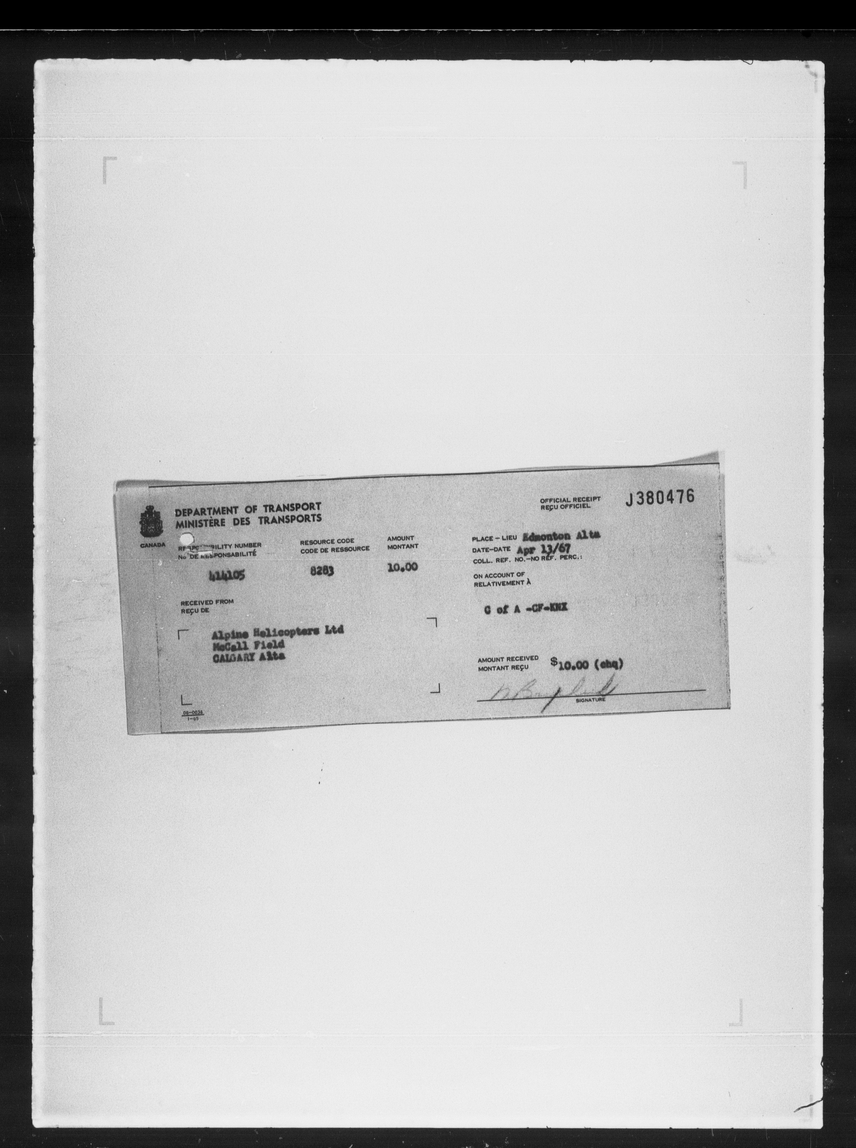 Department of Transport : Civil aircraft registration, inspection and operation files, block 5008, 1920-1986 - 8034