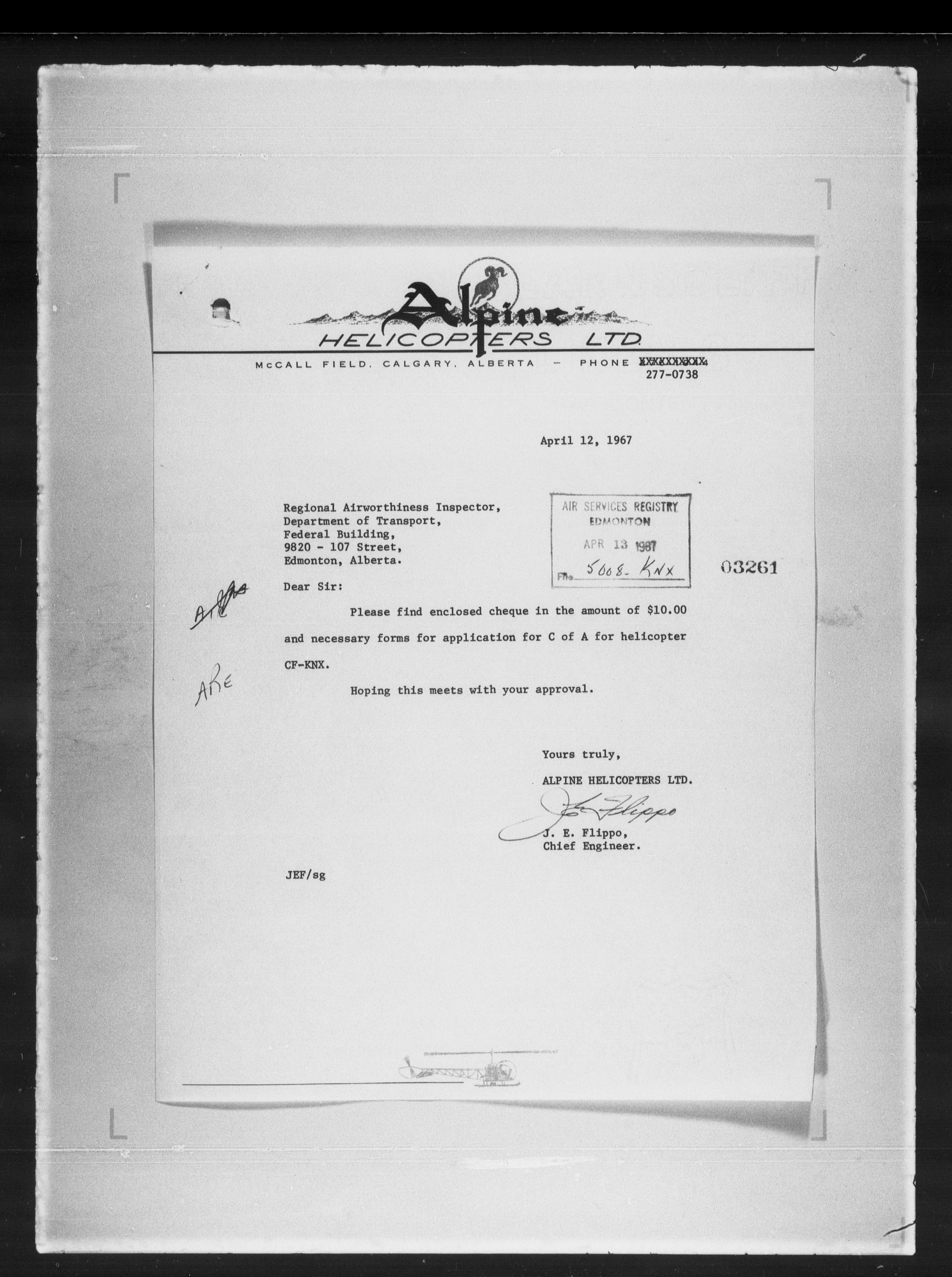 Department of Transport : Civil aircraft registration, inspection and operation files, block 5008, 1920-1986 - 8034