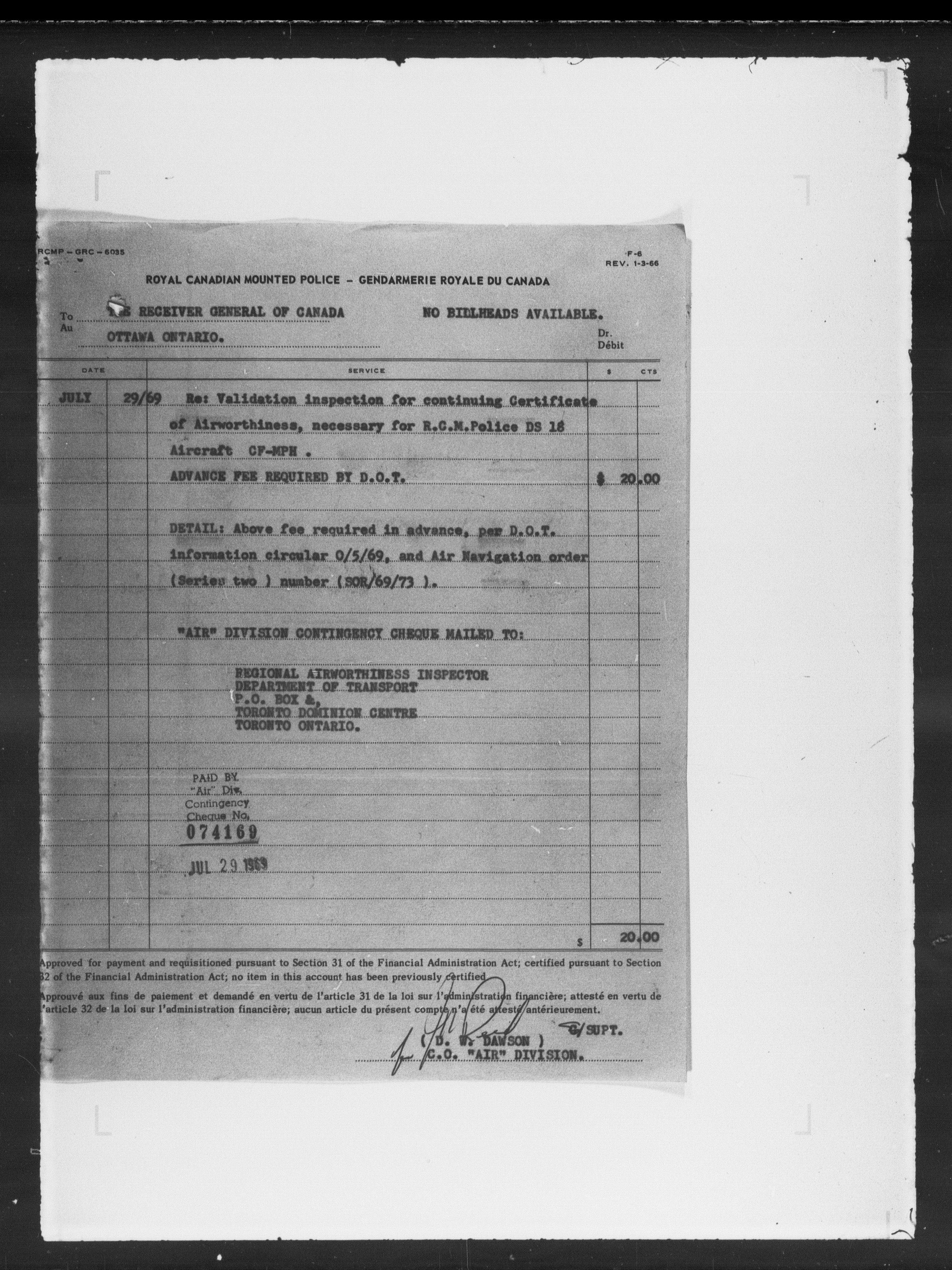 Department of Transport : Civil aircraft registration, inspection and operation files, block 5008, 1920-1986 - 8035