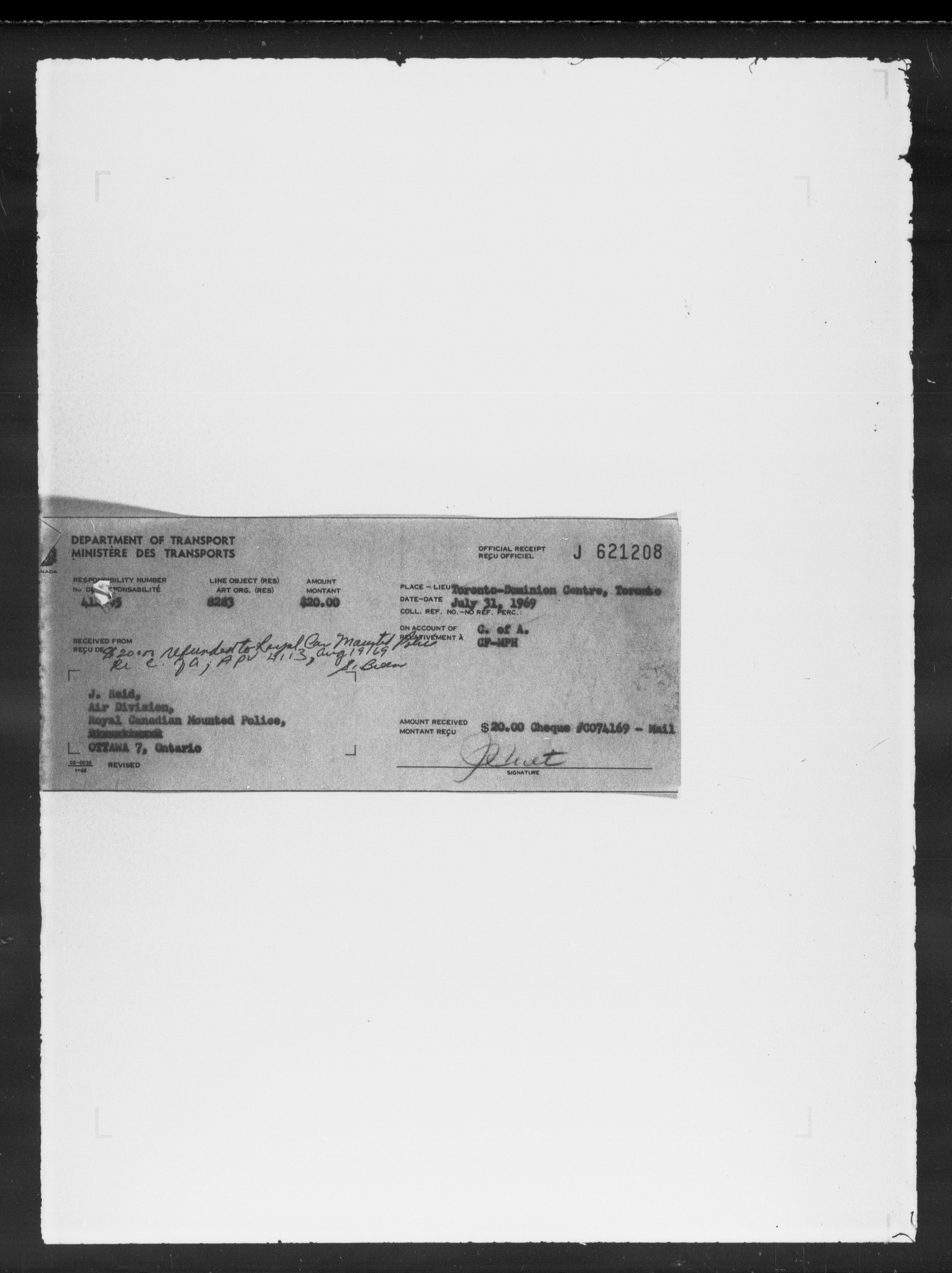 Department of Transport : Civil aircraft registration, inspection and operation files, block 5008, 1920-1986 - 8035