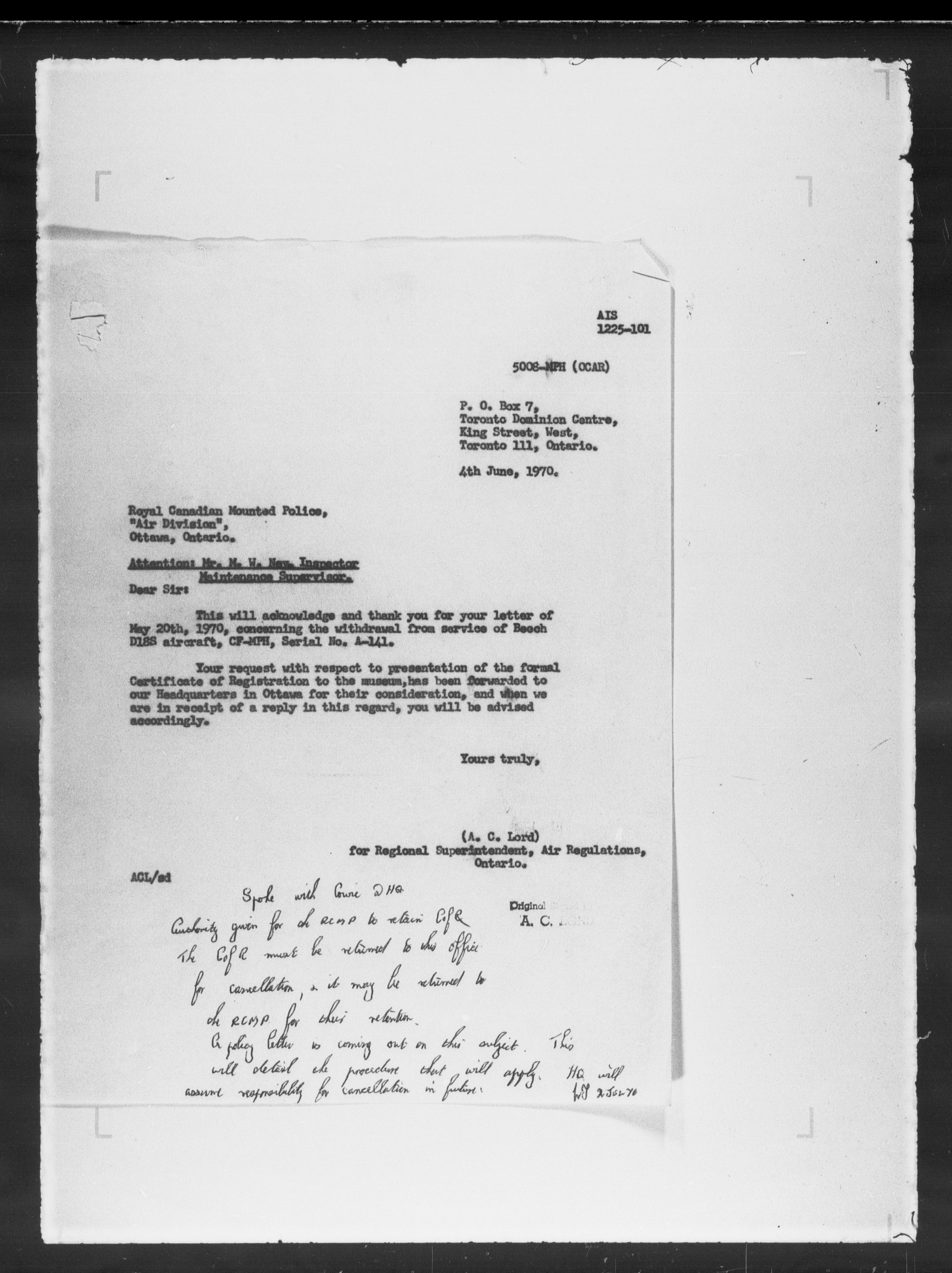 Department of Transport : Civil aircraft registration, inspection and operation files, block 5008, 1920-1986 - 8035