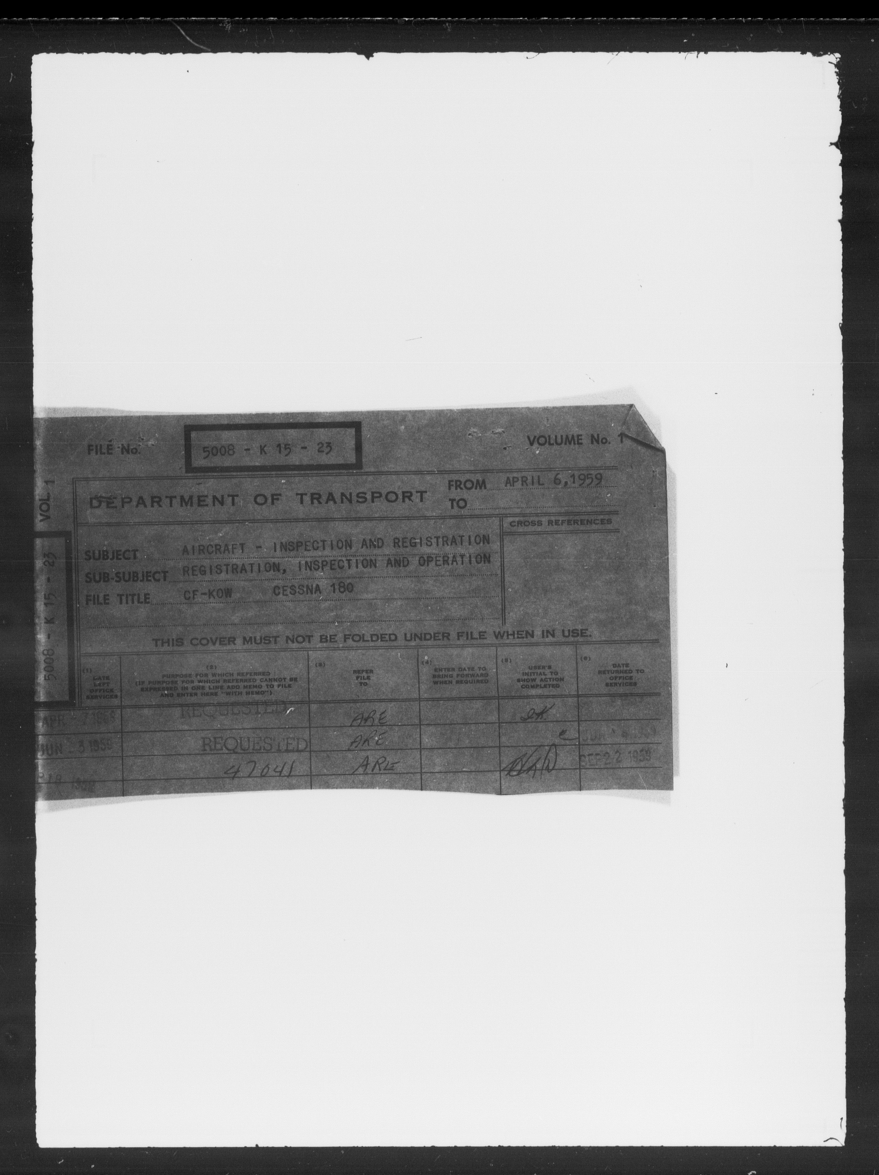Department of Transport : Civil aircraft registration, inspection and operation files, block 5008, 1920-1986 - 8035