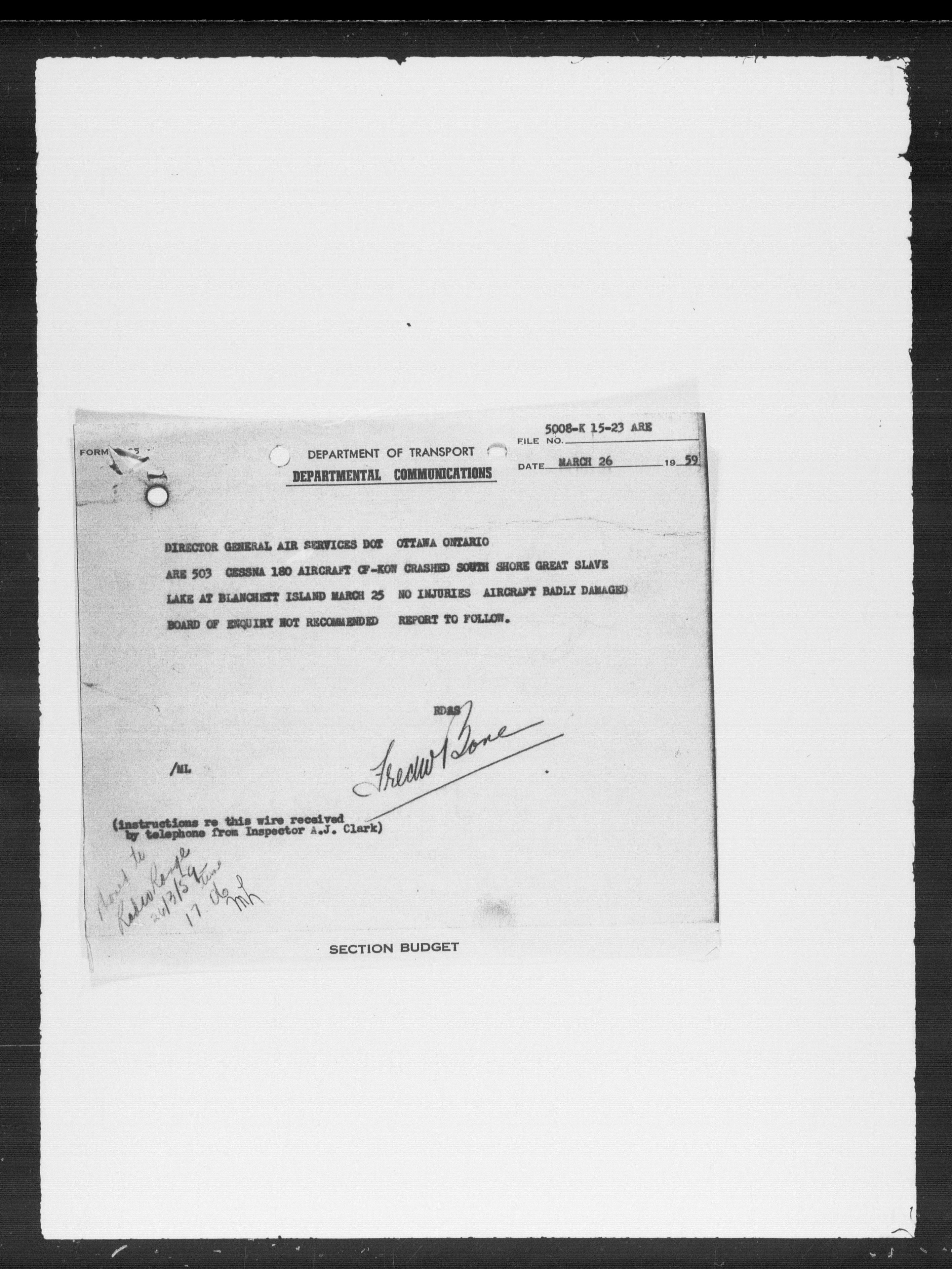 Department of Transport : Civil aircraft registration, inspection and operation files, block 5008, 1920-1986 - 8035