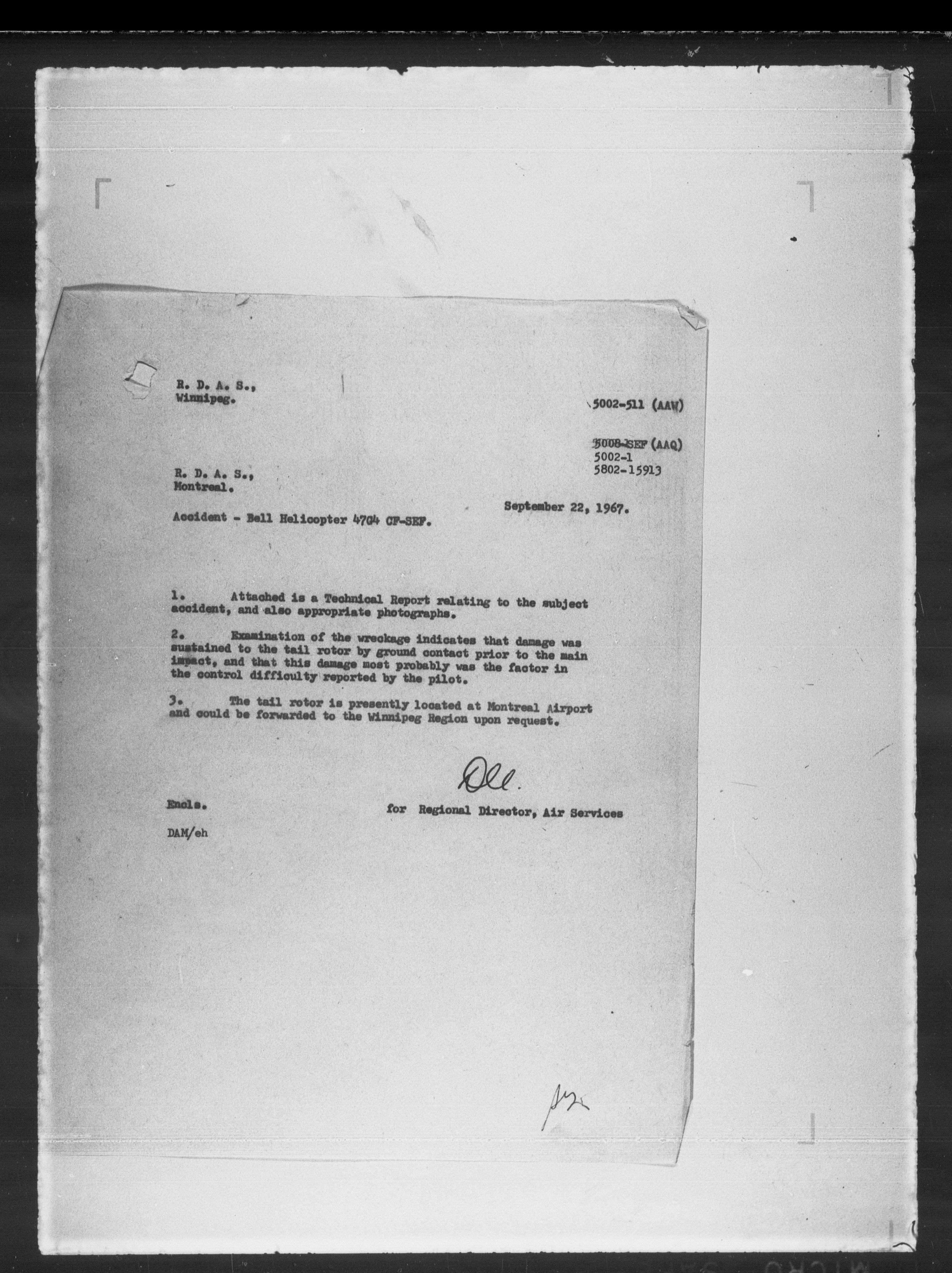 Department of Transport : Civil aircraft registration, inspection and operation files, block 5008, 1920-1986 - 8037