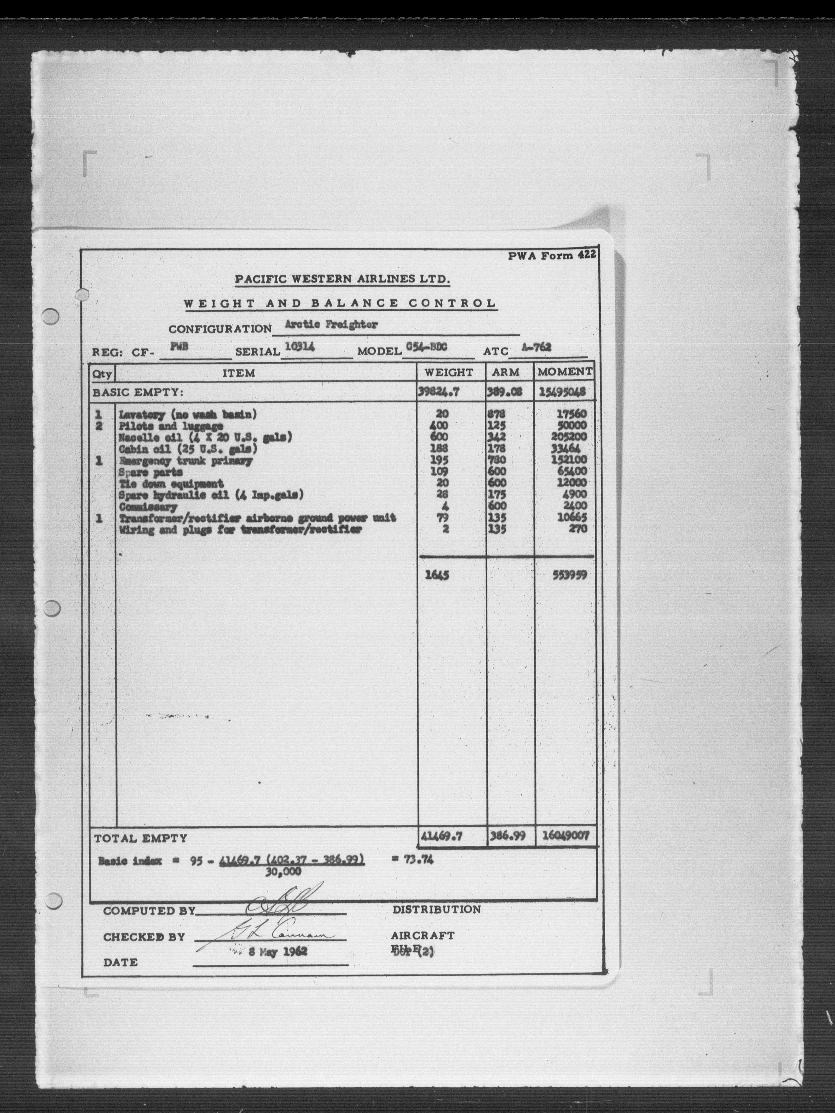 Department of Transport : Civil aircraft registration, inspection and operation files, block 5008, 1920-1986 - 8037