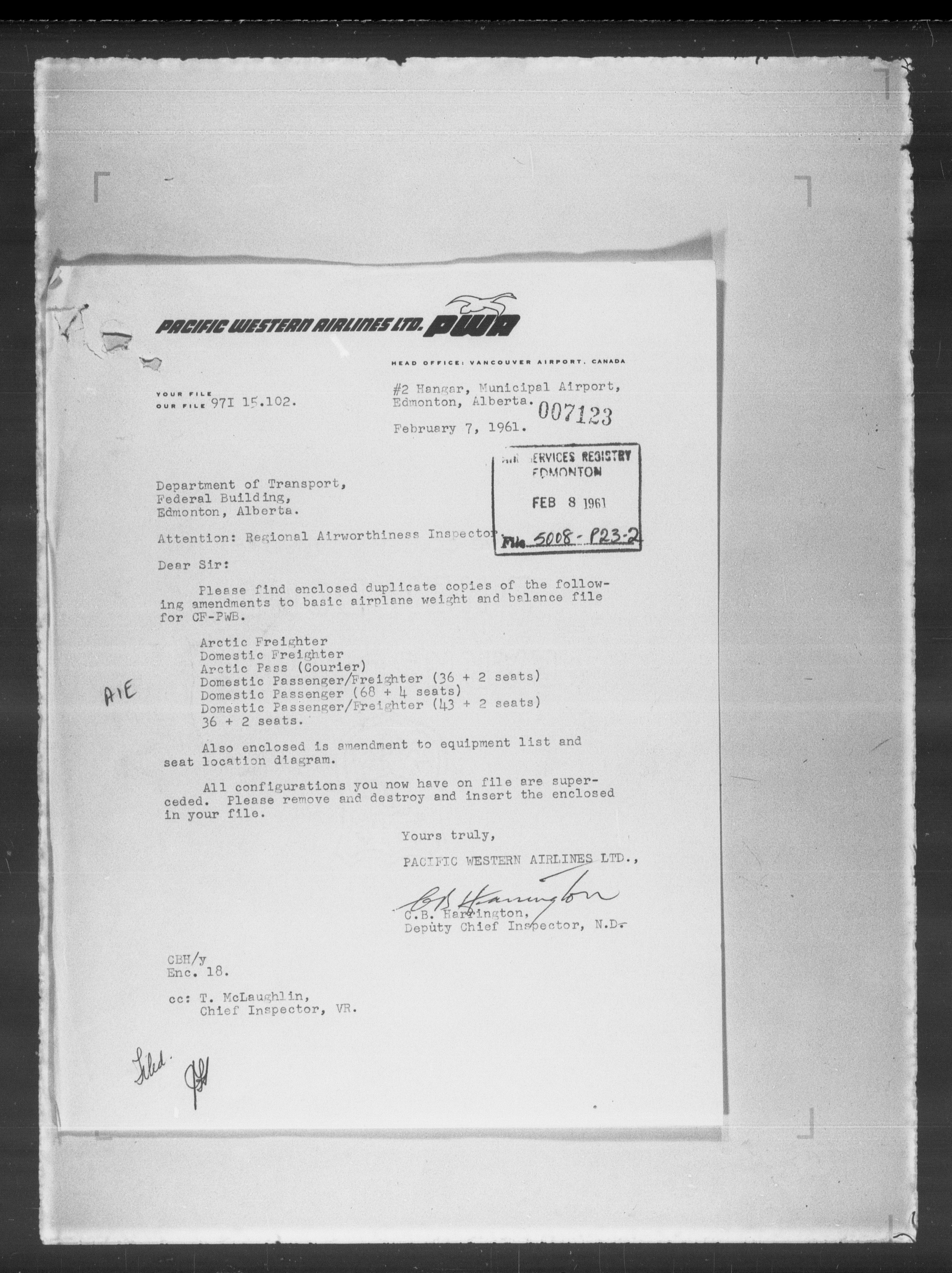 Department of Transport : Civil aircraft registration, inspection and operation files, block 5008, 1920-1986 - 8037