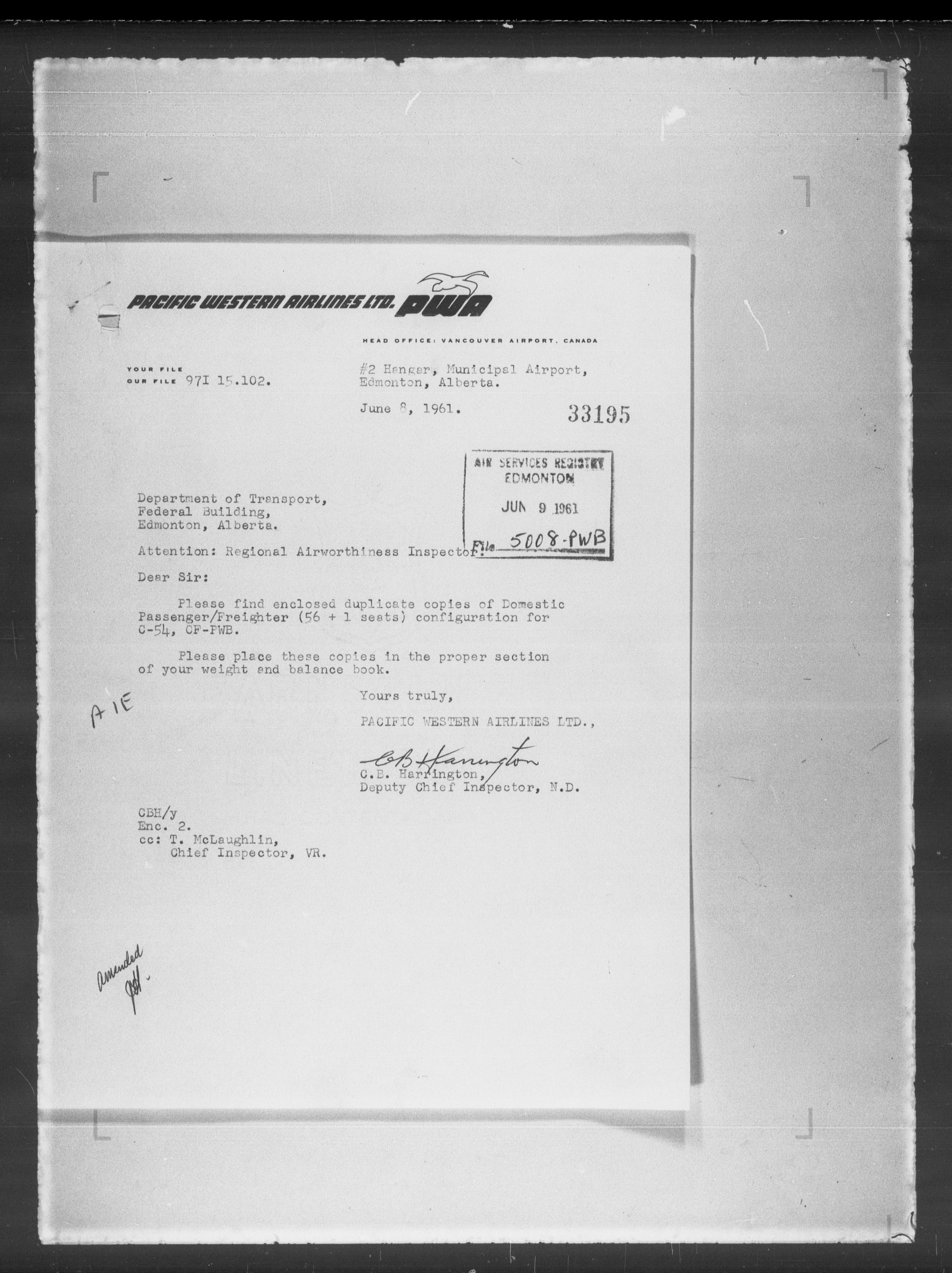 Department of Transport : Civil aircraft registration, inspection and operation files, block 5008, 1920-1986 - 8037