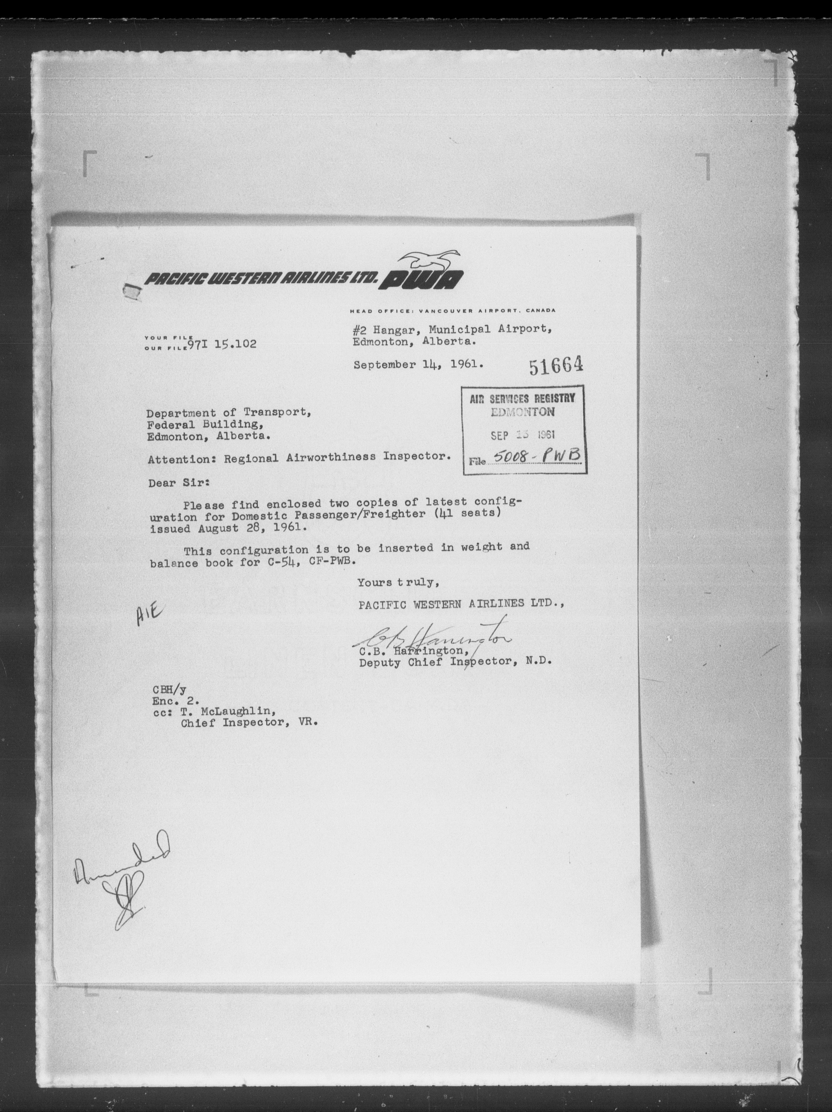 Department of Transport : Civil aircraft registration, inspection and operation files, block 5008, 1920-1986 - 8037