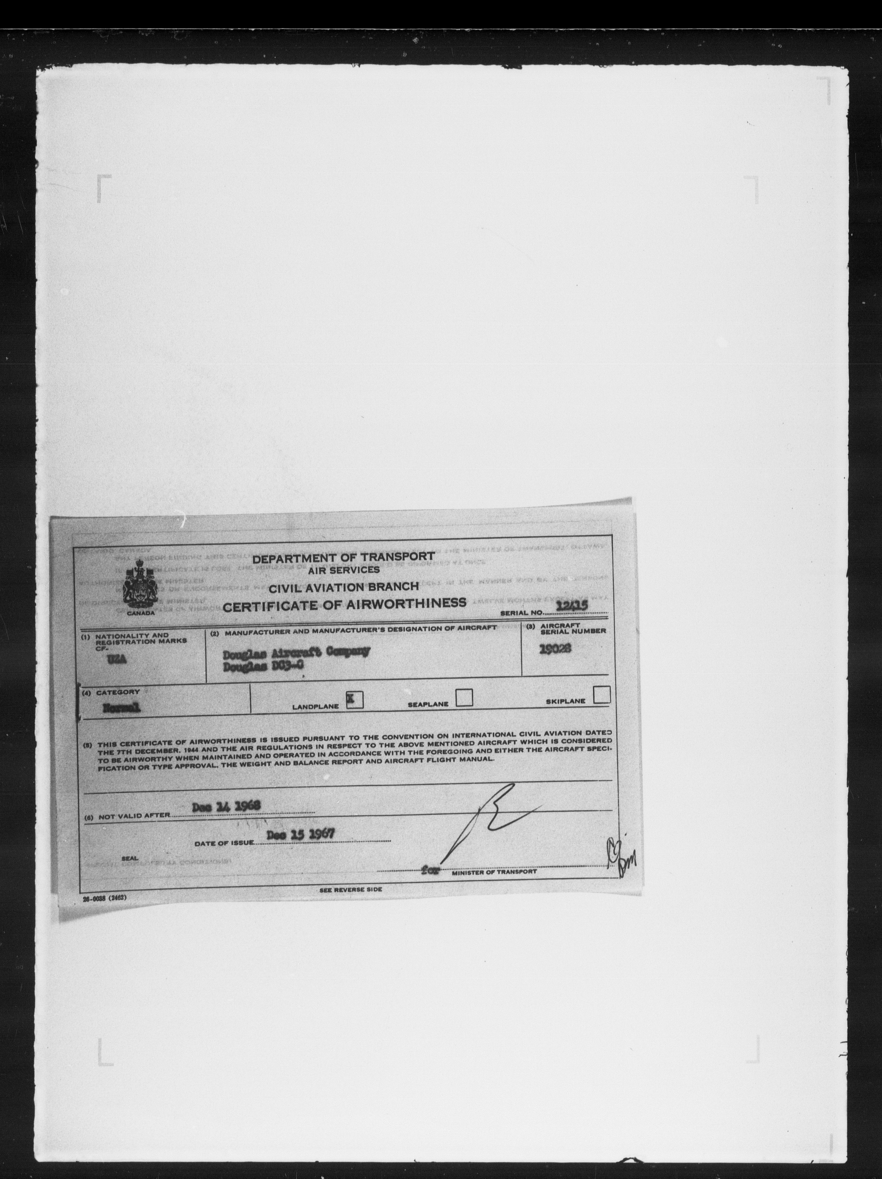 Department of Transport : Civil aircraft registration, inspection and operation files, block 5008, 1920-1986 - 8038