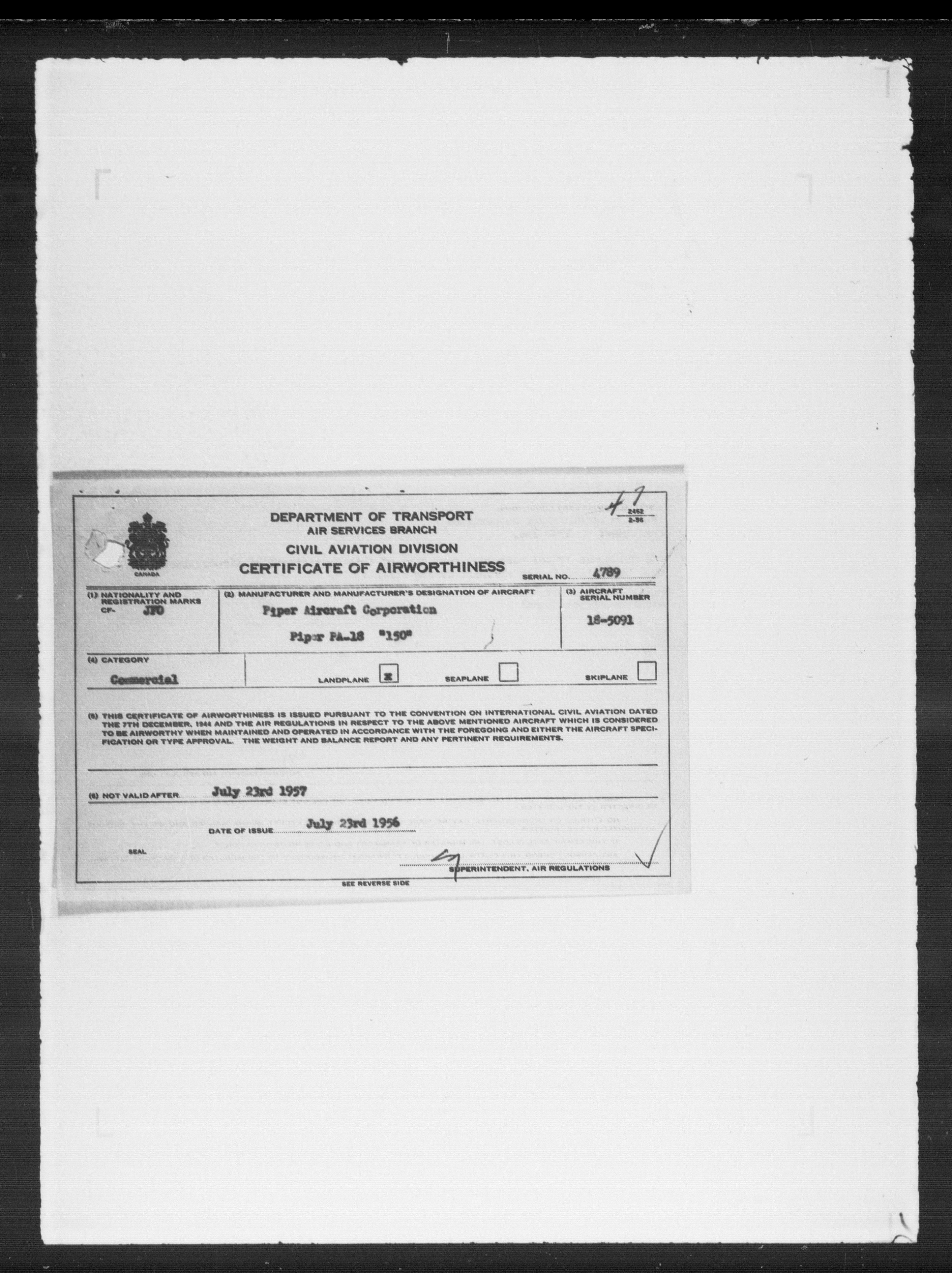 Department of Transport : Civil aircraft registration, inspection and operation files, block 5008, 1920-1986 - 8042