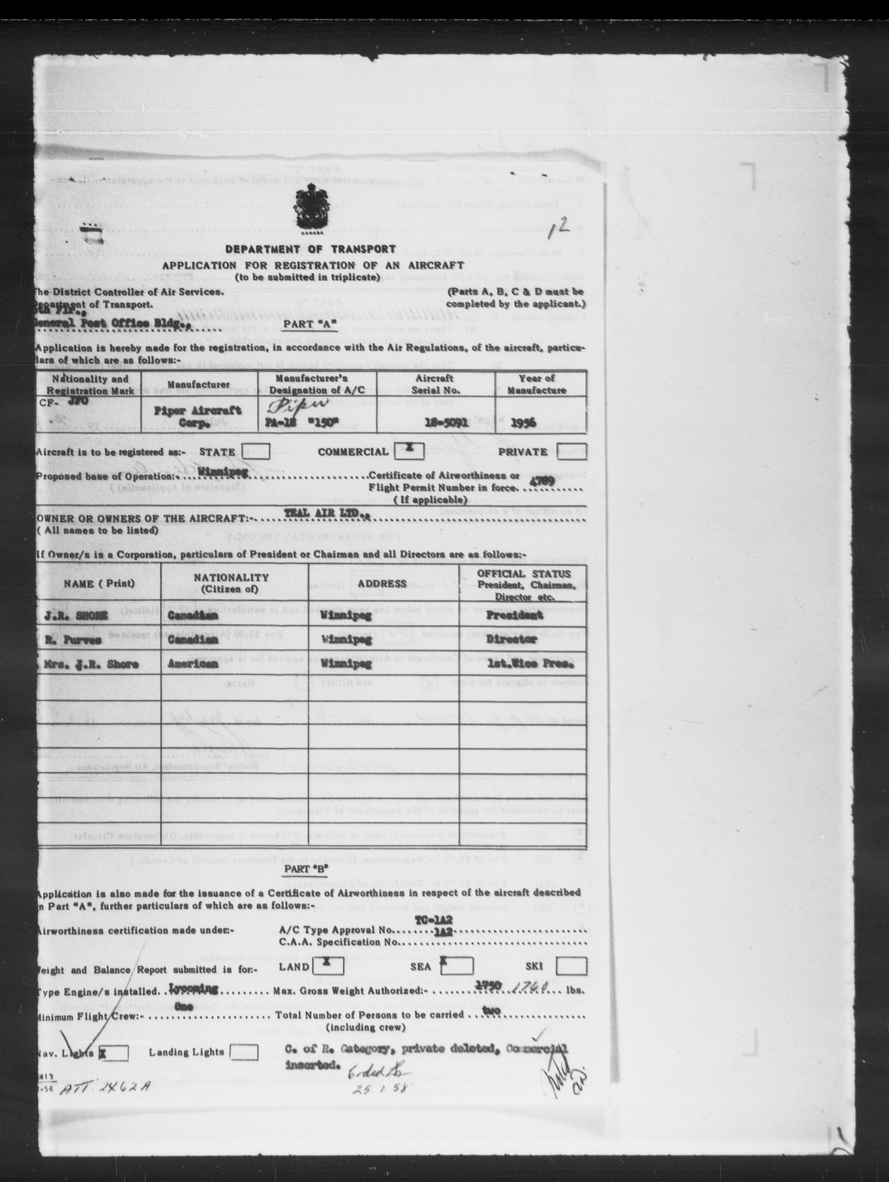 Department of Transport : Civil aircraft registration, inspection and operation files, block 5008, 1920-1986 - 8042