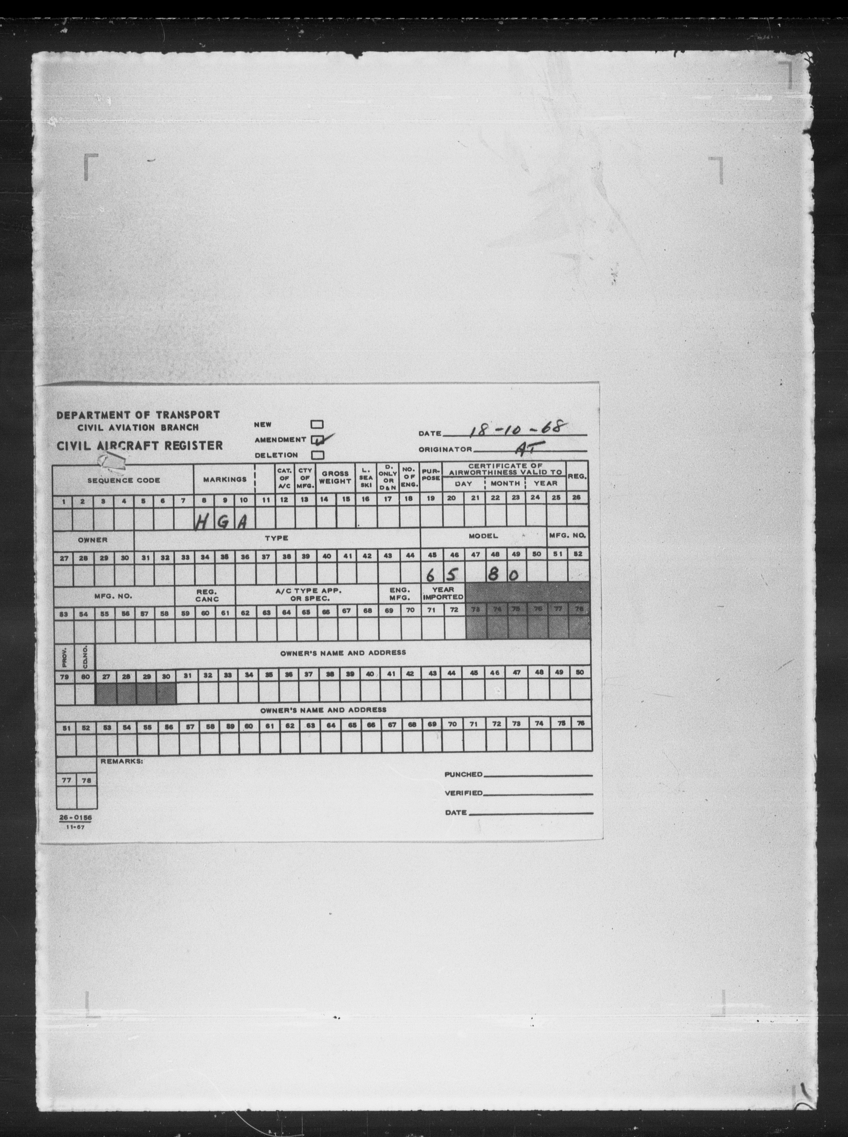 Department of Transport : Civil aircraft registration, inspection and operation files, block 5008, 1920-1986 - 8042