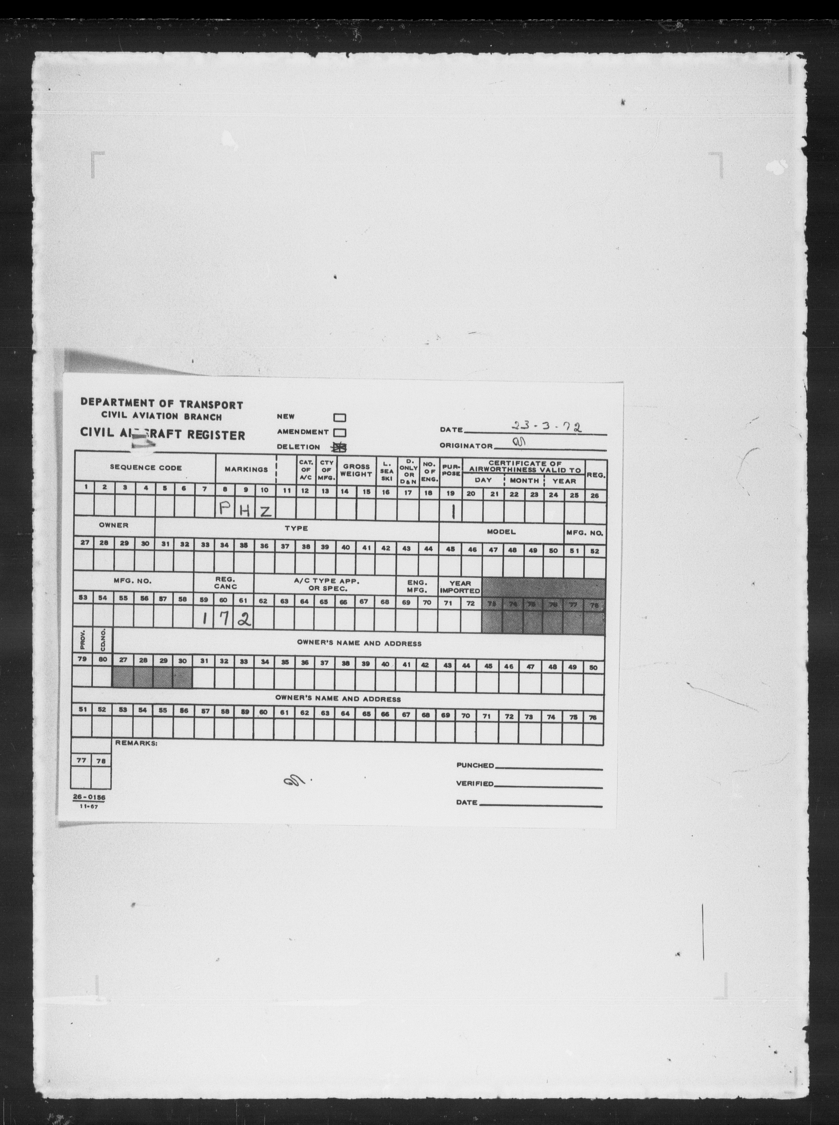 Department of Transport : Civil aircraft registration, inspection and operation files, block 5008, 1920-1986 - 8044