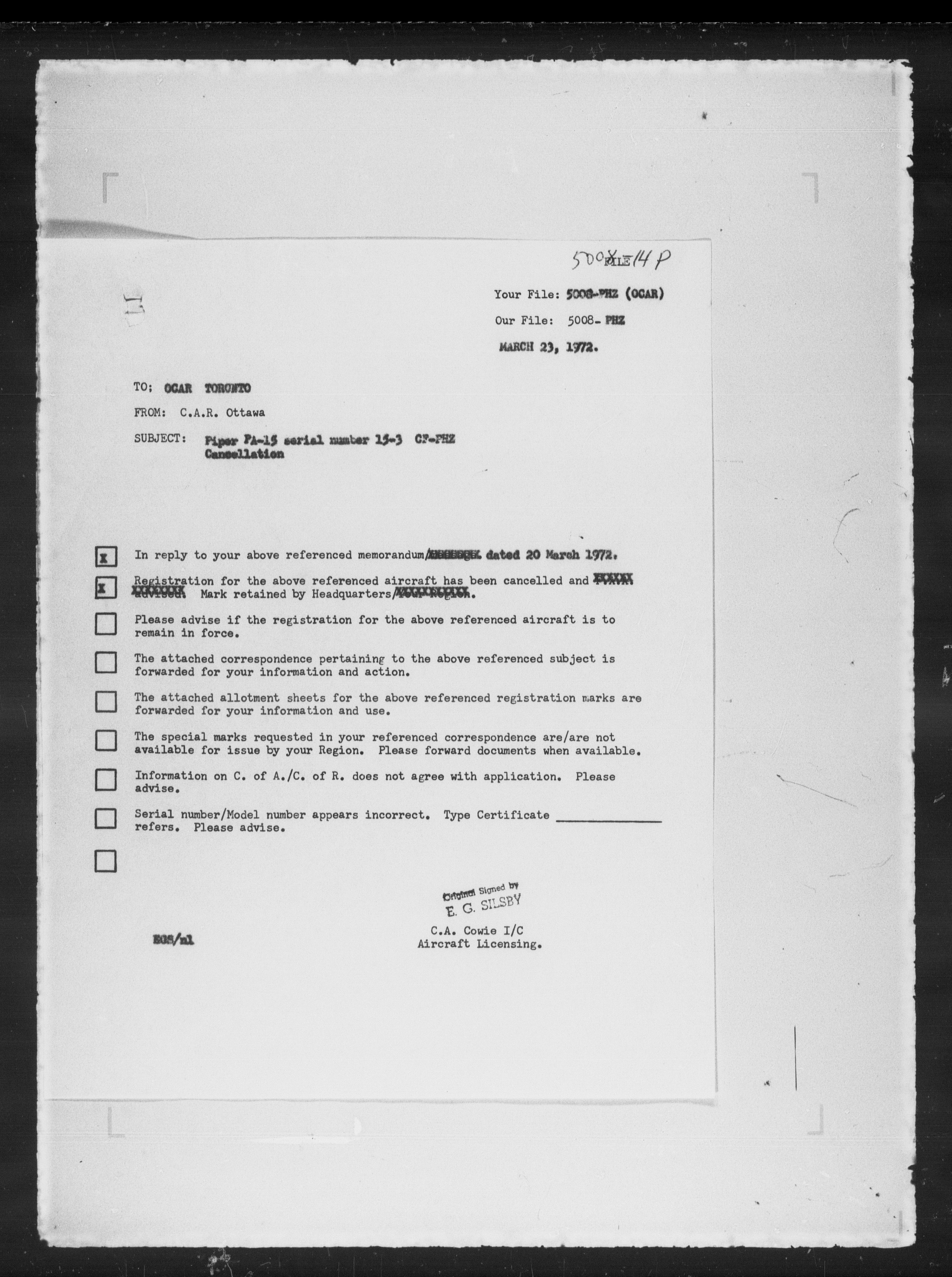Department of Transport : Civil aircraft registration, inspection and operation files, block 5008, 1920-1986 - 8044