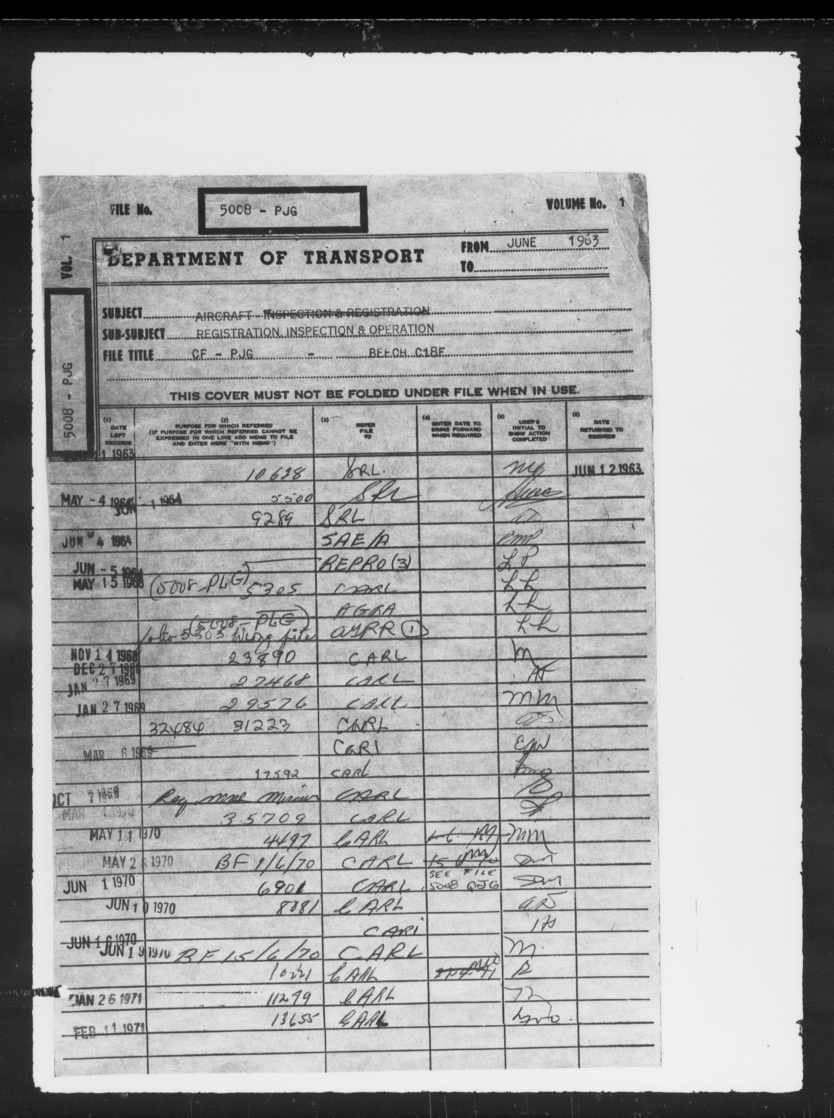 Department of Transport : Civil aircraft registration, inspection and operation files, block 5008, 1920-1986 - 8044