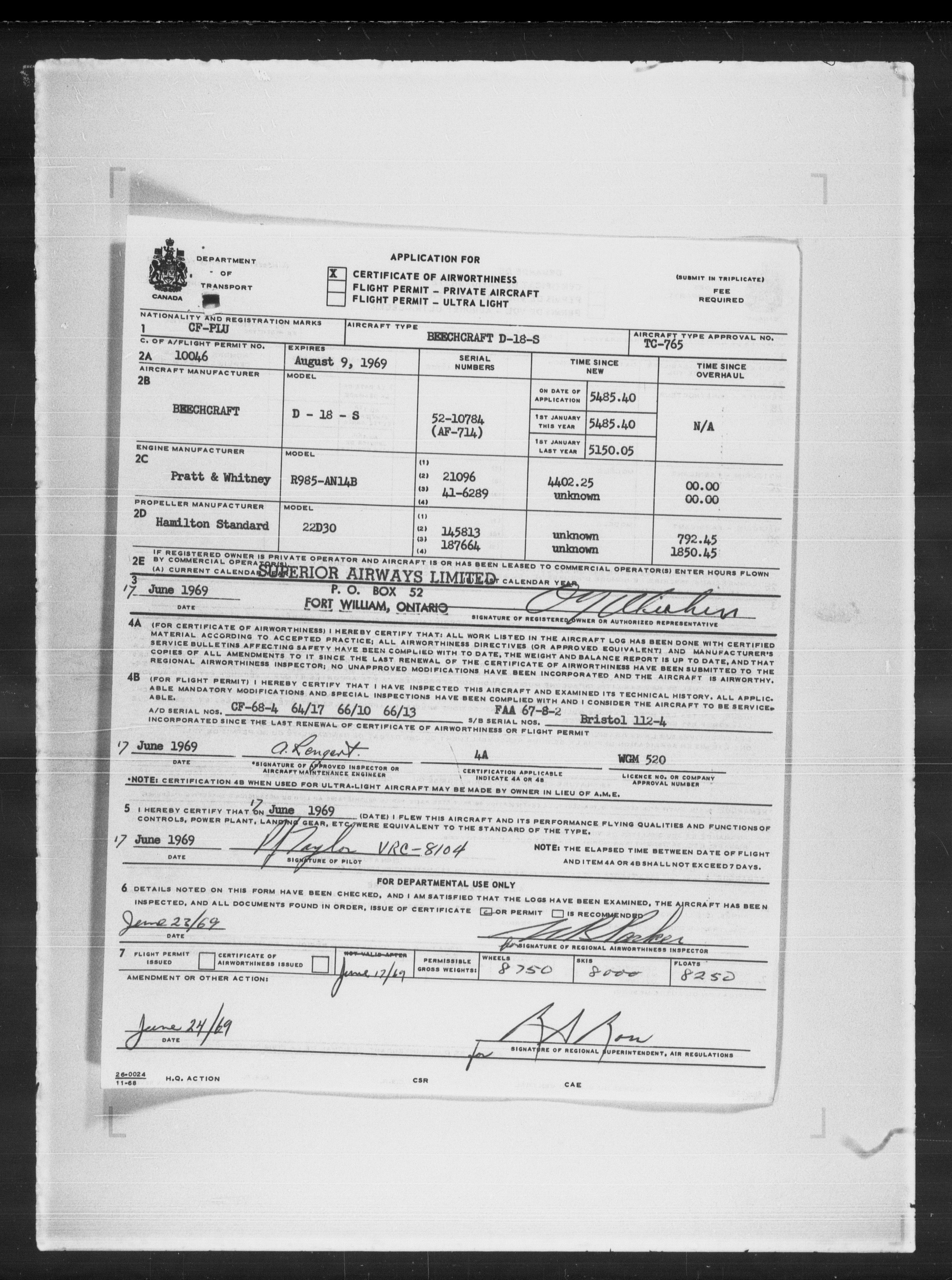 Department of Transport : Civil aircraft registration, inspection and operation files, block 5008, 1920-1986 - 8045