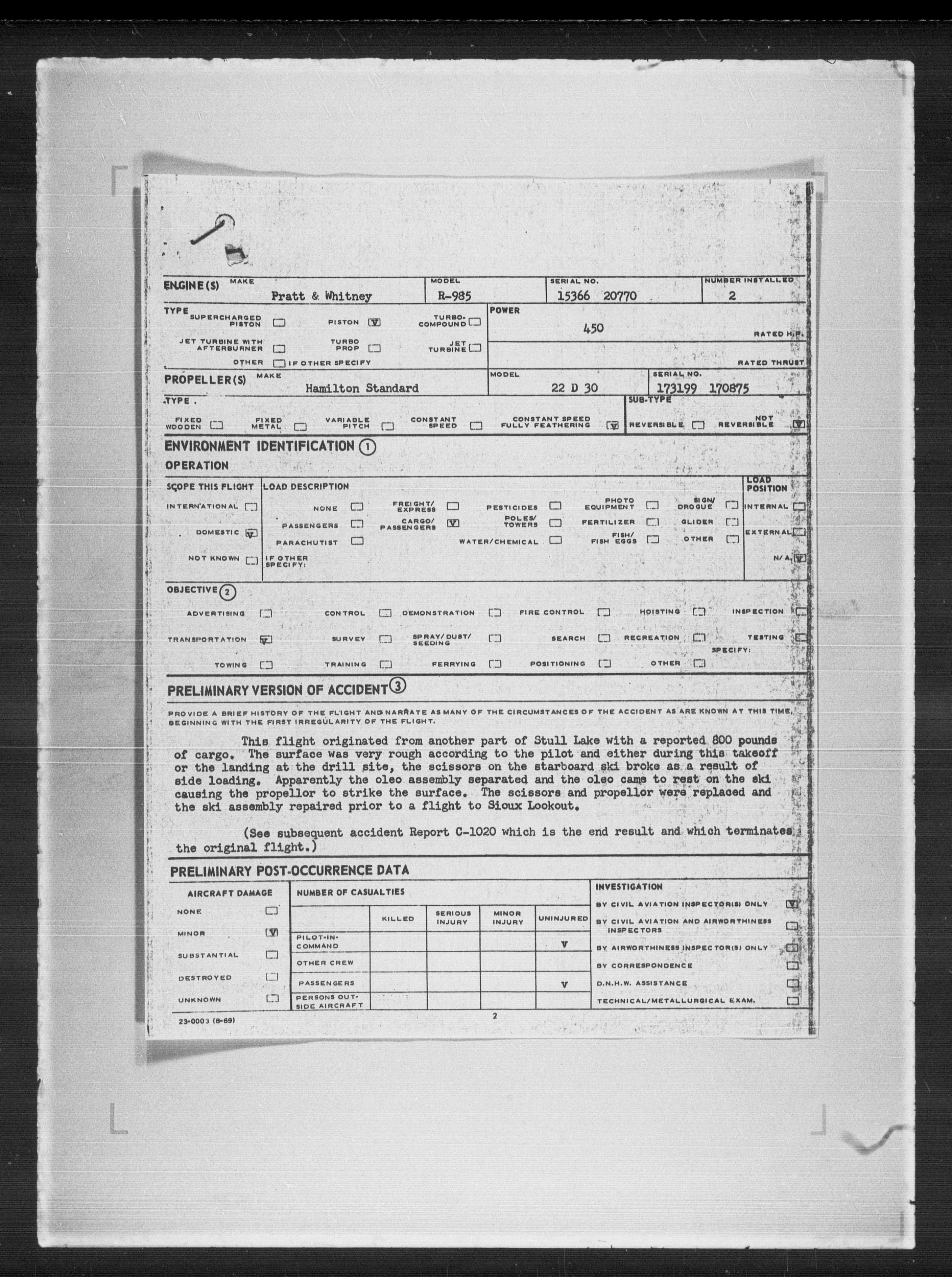 Department of Transport : Civil aircraft registration, inspection and operation files, block 5008, 1920-1986 - 8045