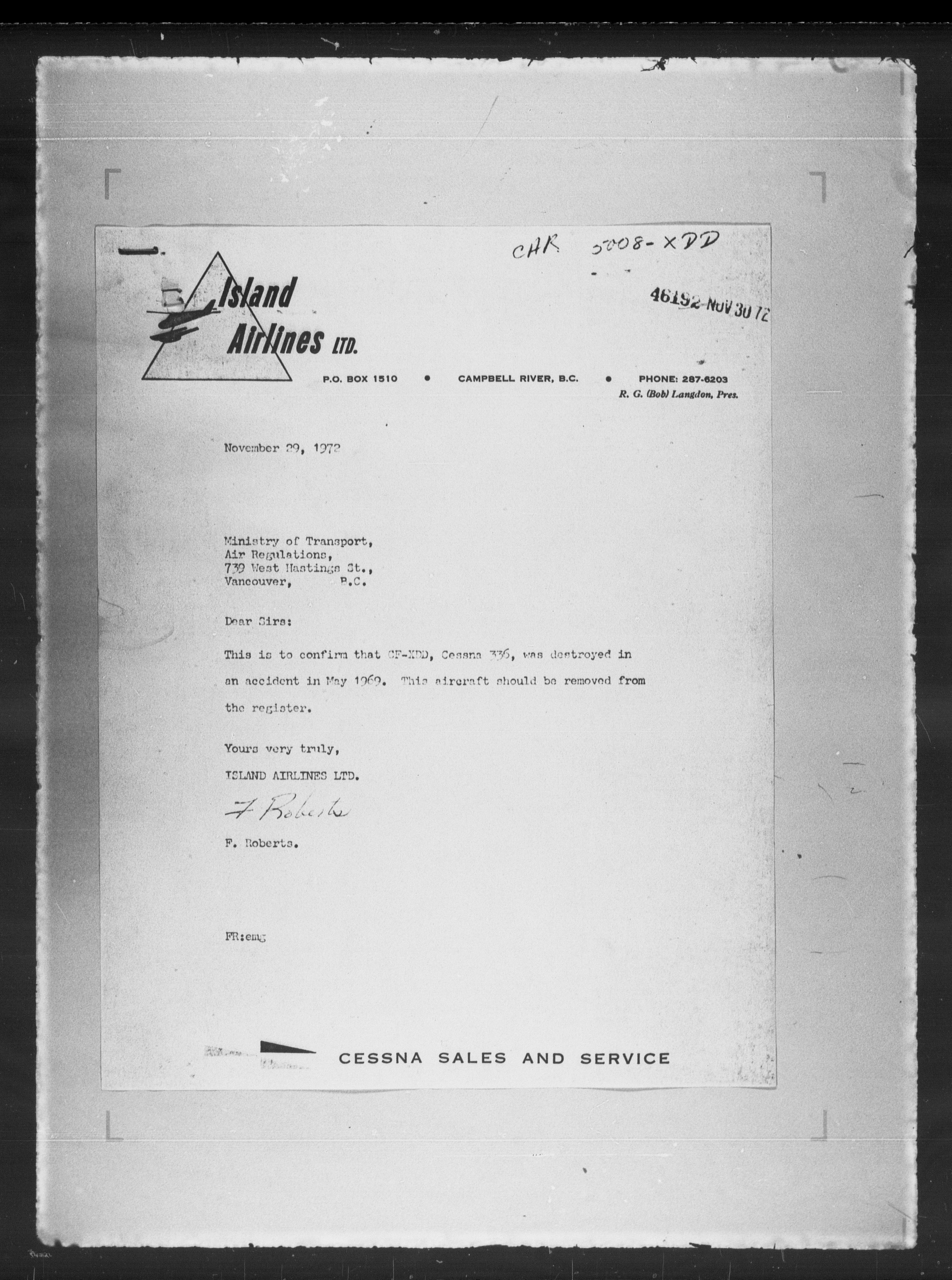 Department of Transport : Civil aircraft registration, inspection and operation files, block 5008, 1920-1986 - 8046