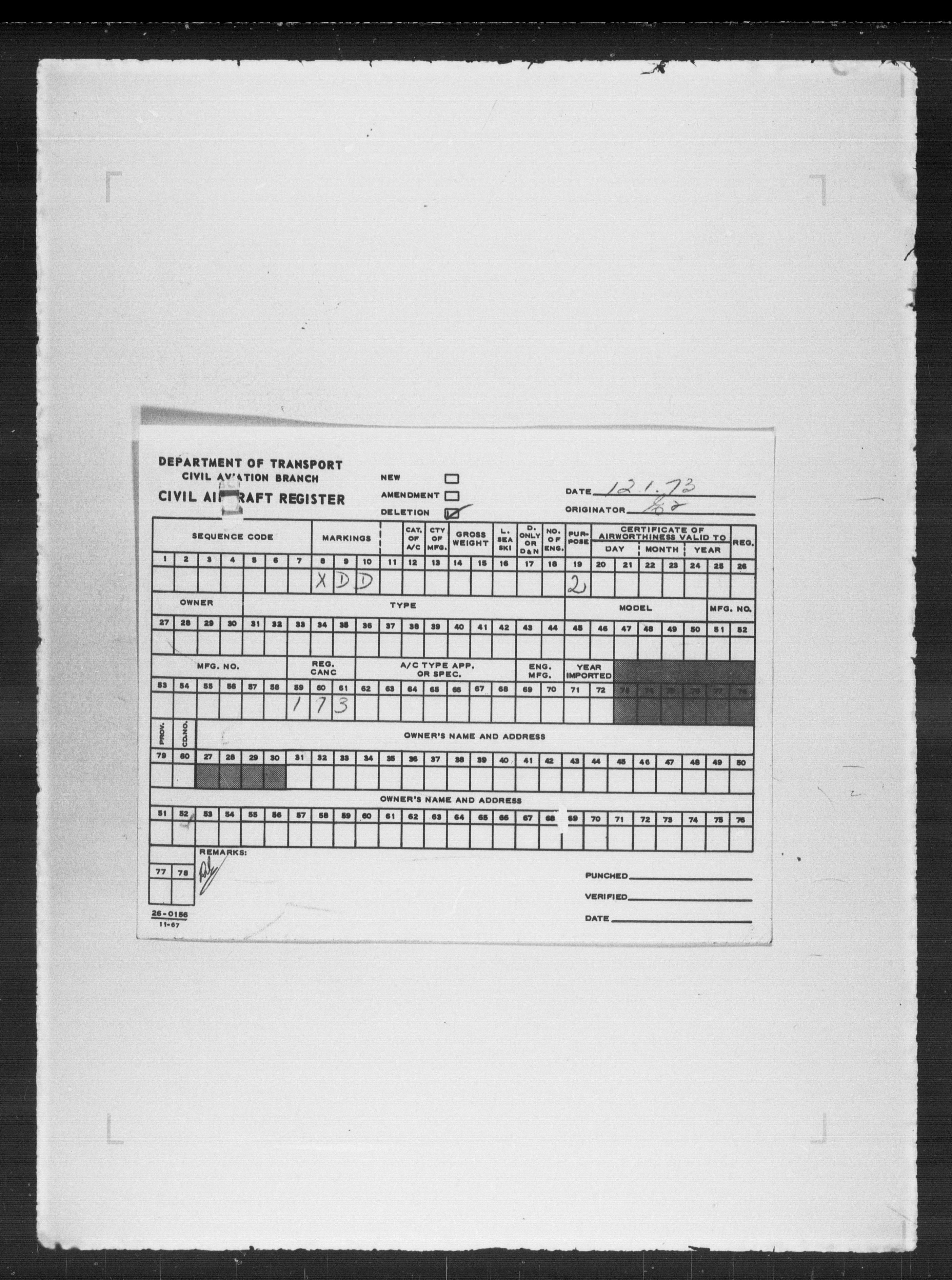 Department of Transport : Civil aircraft registration, inspection and operation files, block 5008, 1920-1986 - 8046