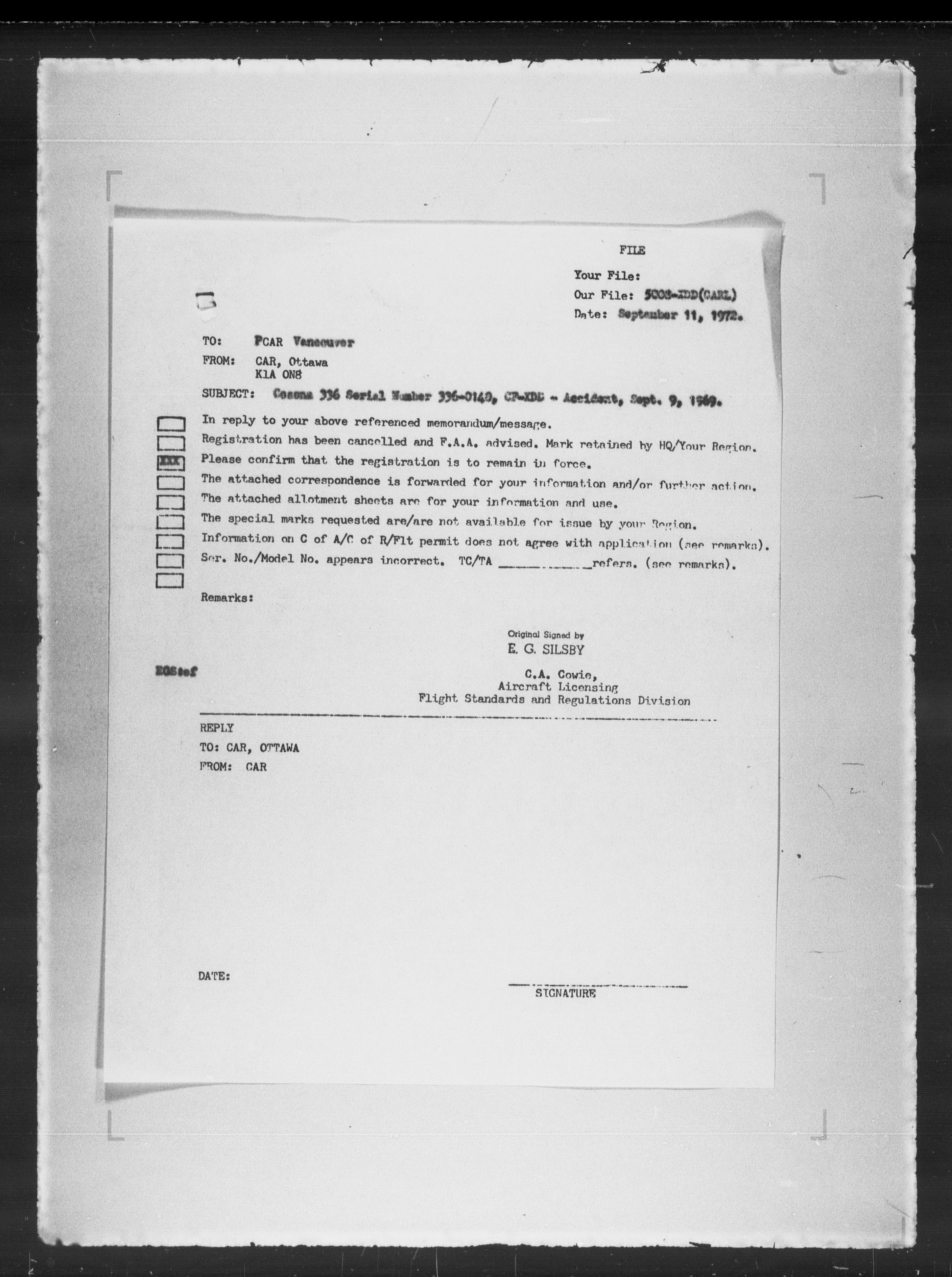 Department of Transport : Civil aircraft registration, inspection and operation files, block 5008, 1920-1986 - 8046