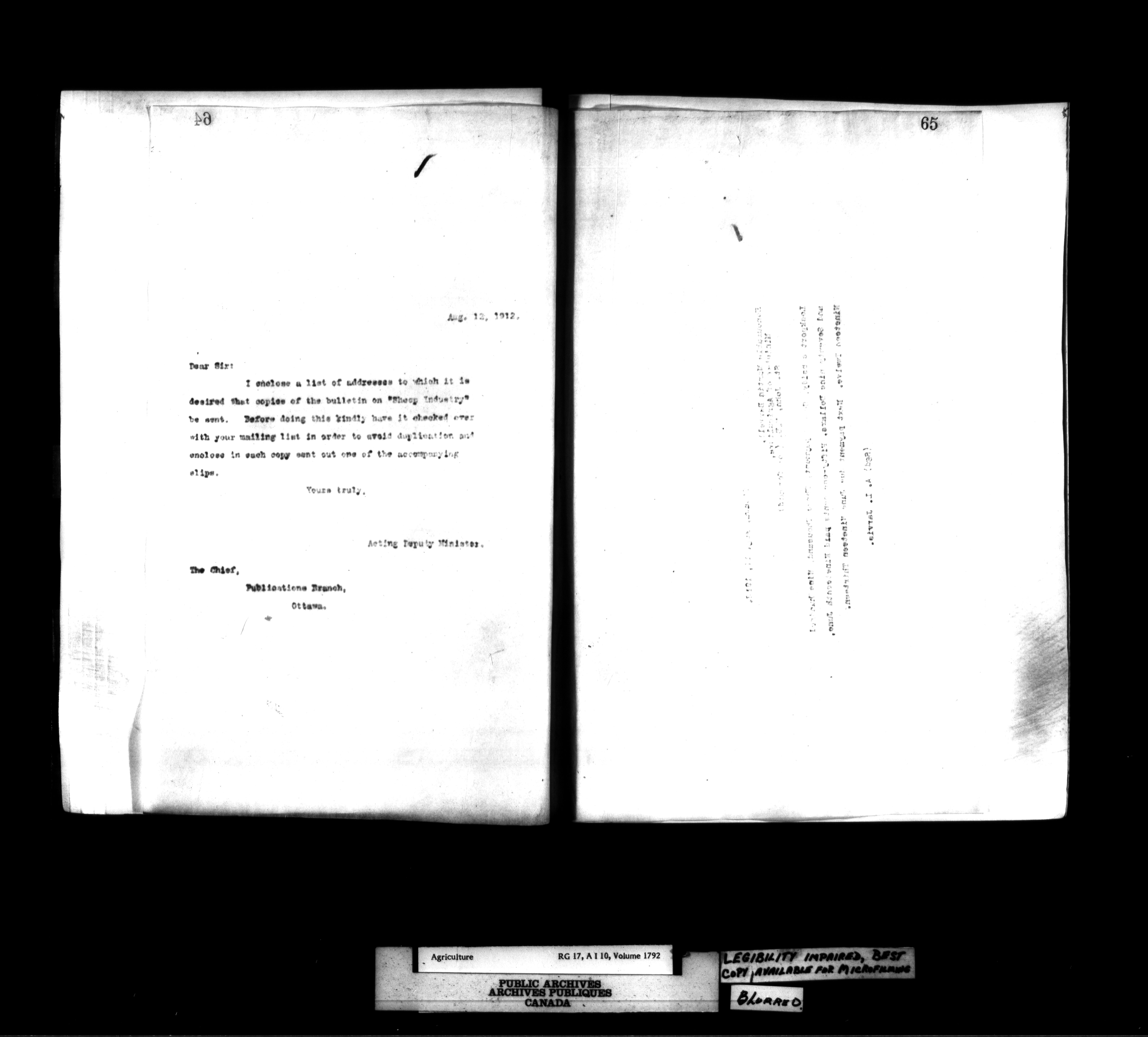 Department of Agriculture : Deputy Minister's letterbooks, 1888-1916 - 807