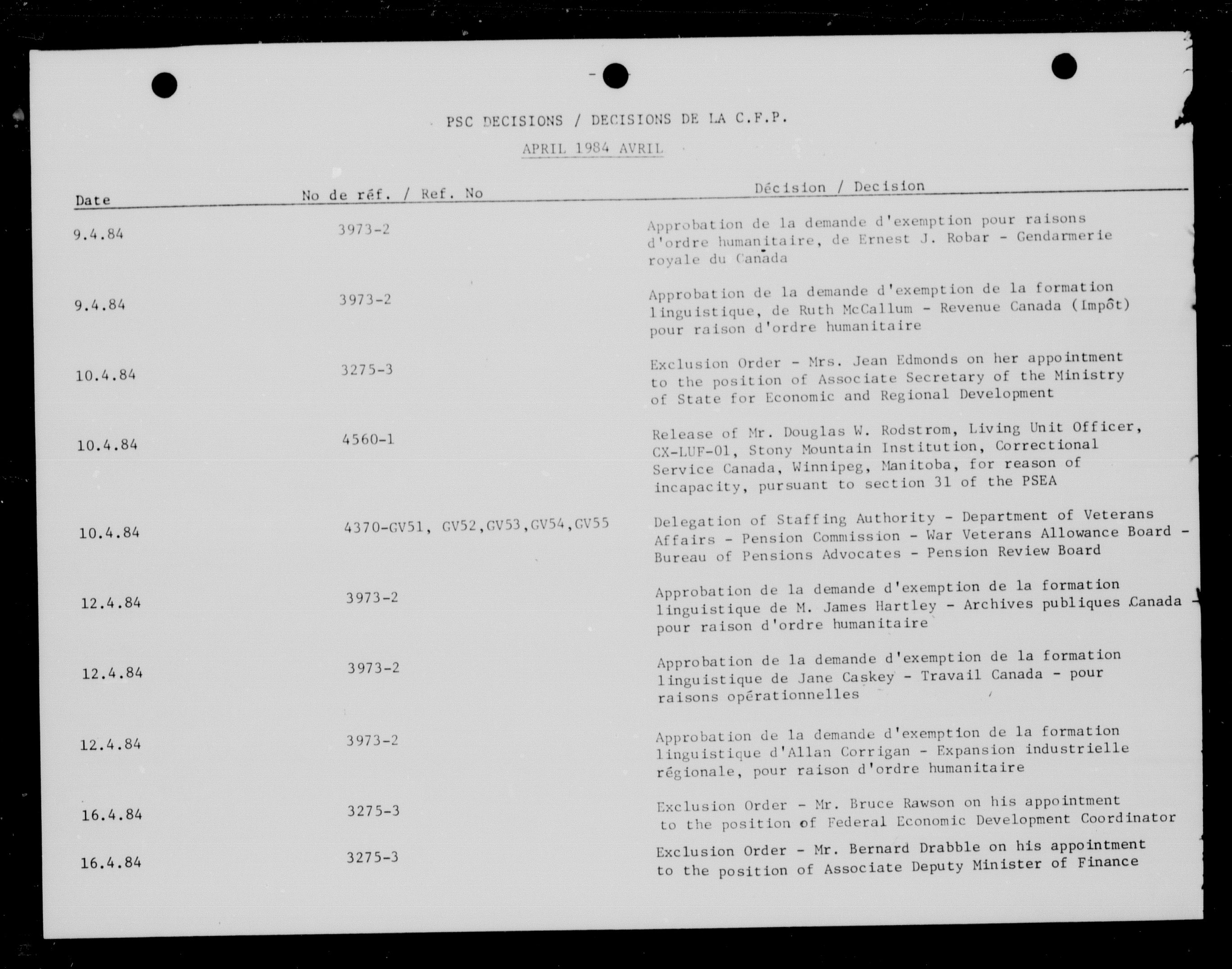 Agendas, minutes and supporting documents from Public Service Commissioners' meetings dating from 1953 to 1985 - 8074