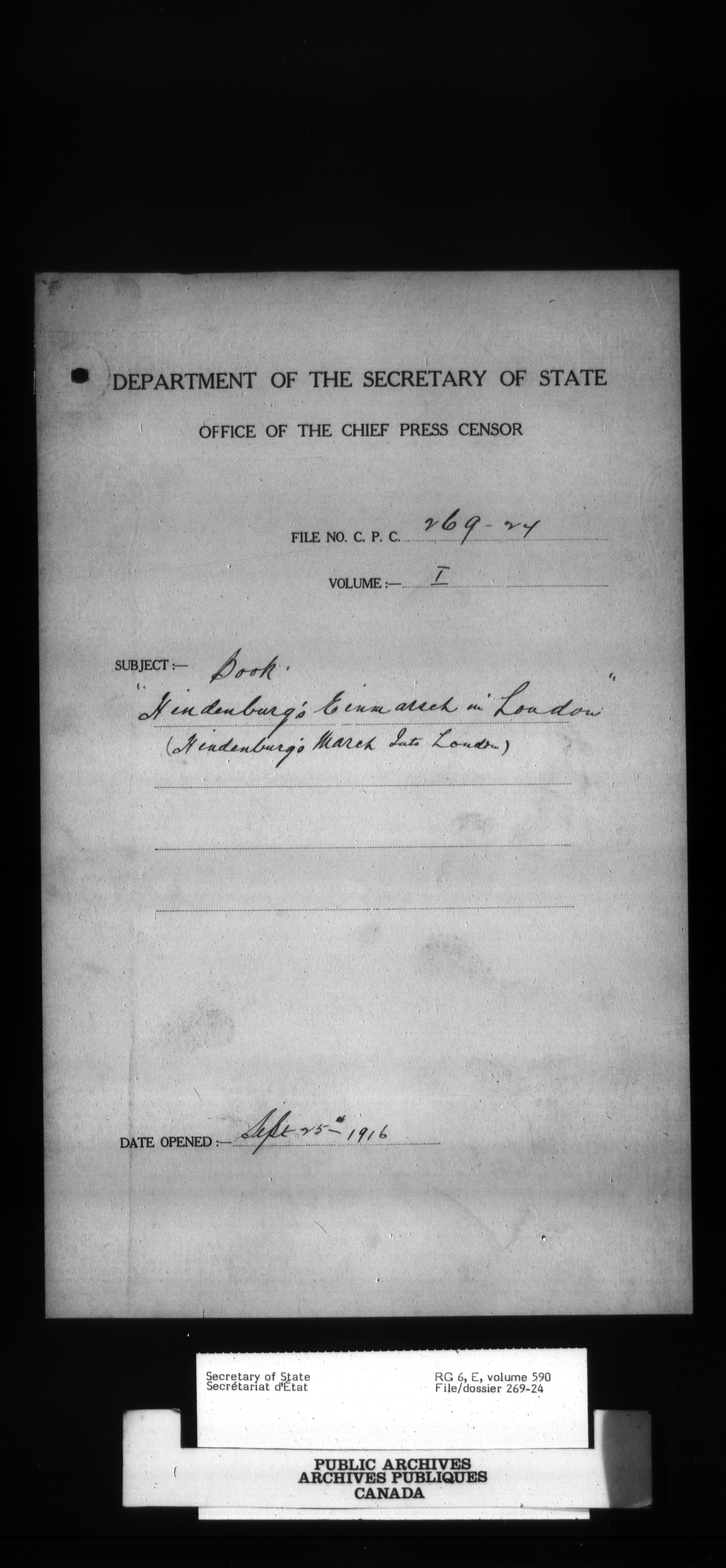 Secretary of State : Chief Press Censor, 1915-1920 - 81