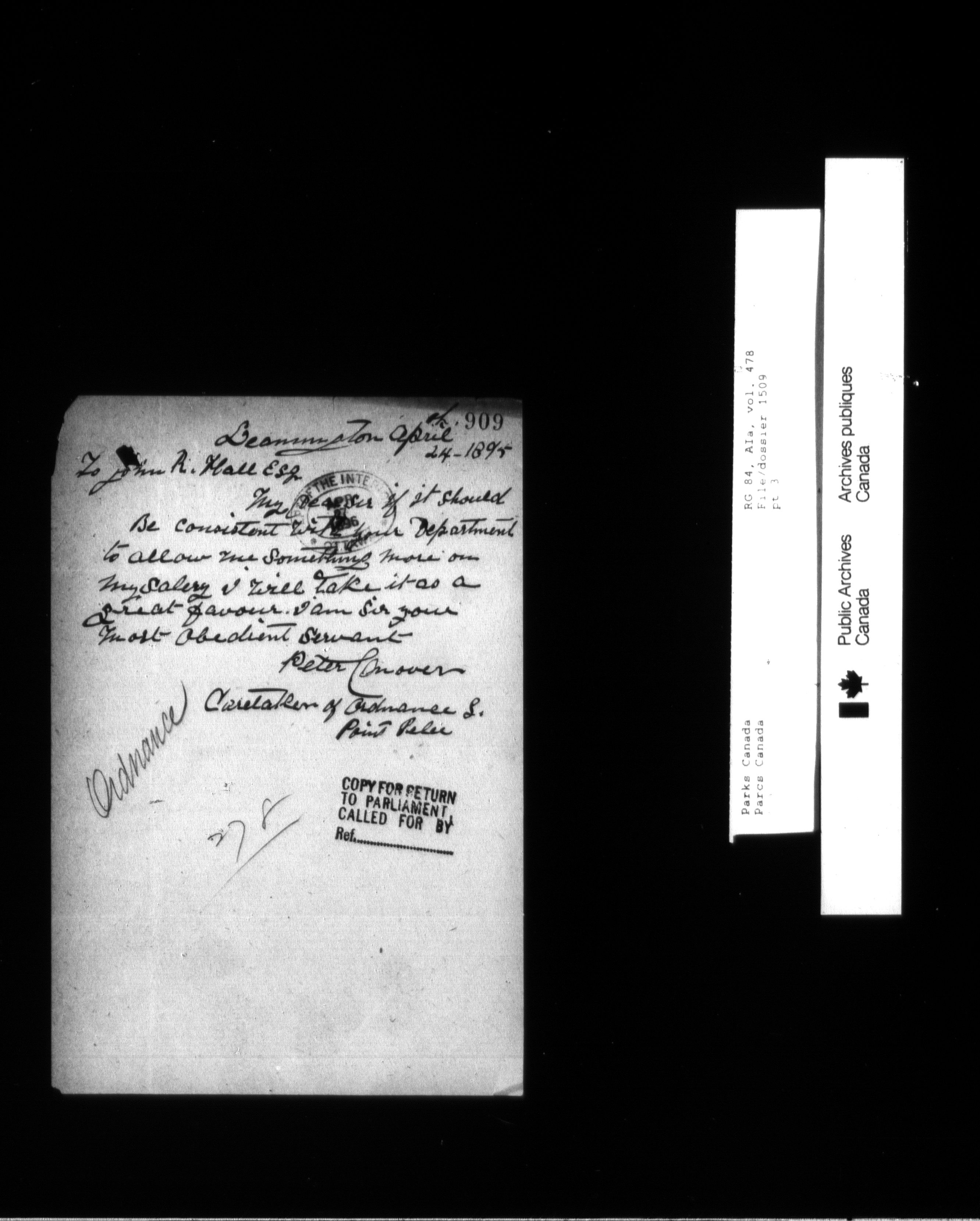 Department of Canadian Heritage, Canadian Parks Service : Park/subject classification systemStraight-numeric registry files (1873-1928)Parks Canada : Central Registry Series - 8101