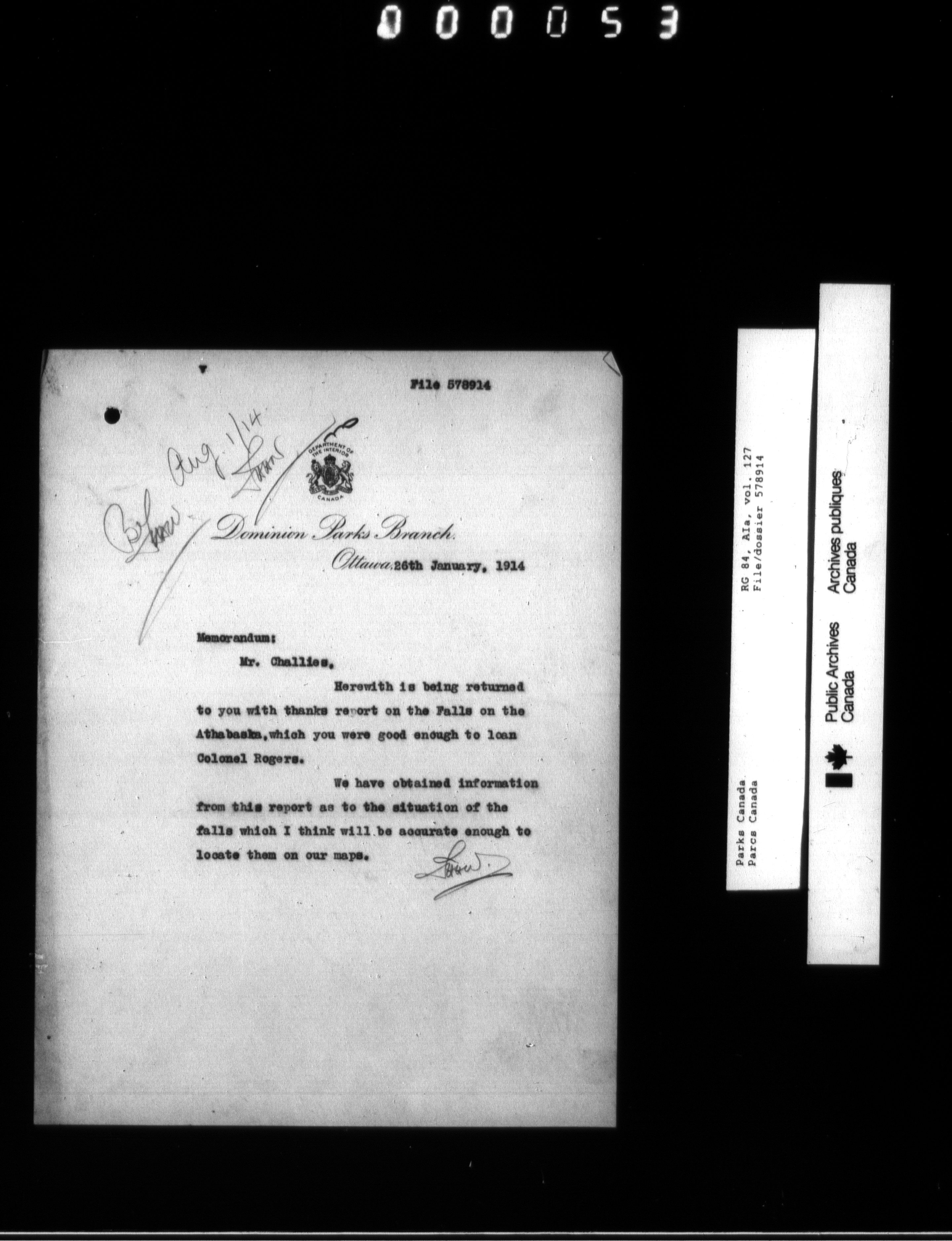 Department of Canadian Heritage, Canadian Parks Service : Park/subject classification systemStraight-numeric registry files (1873-1928)Parks Canada : Central Registry Series - 8101