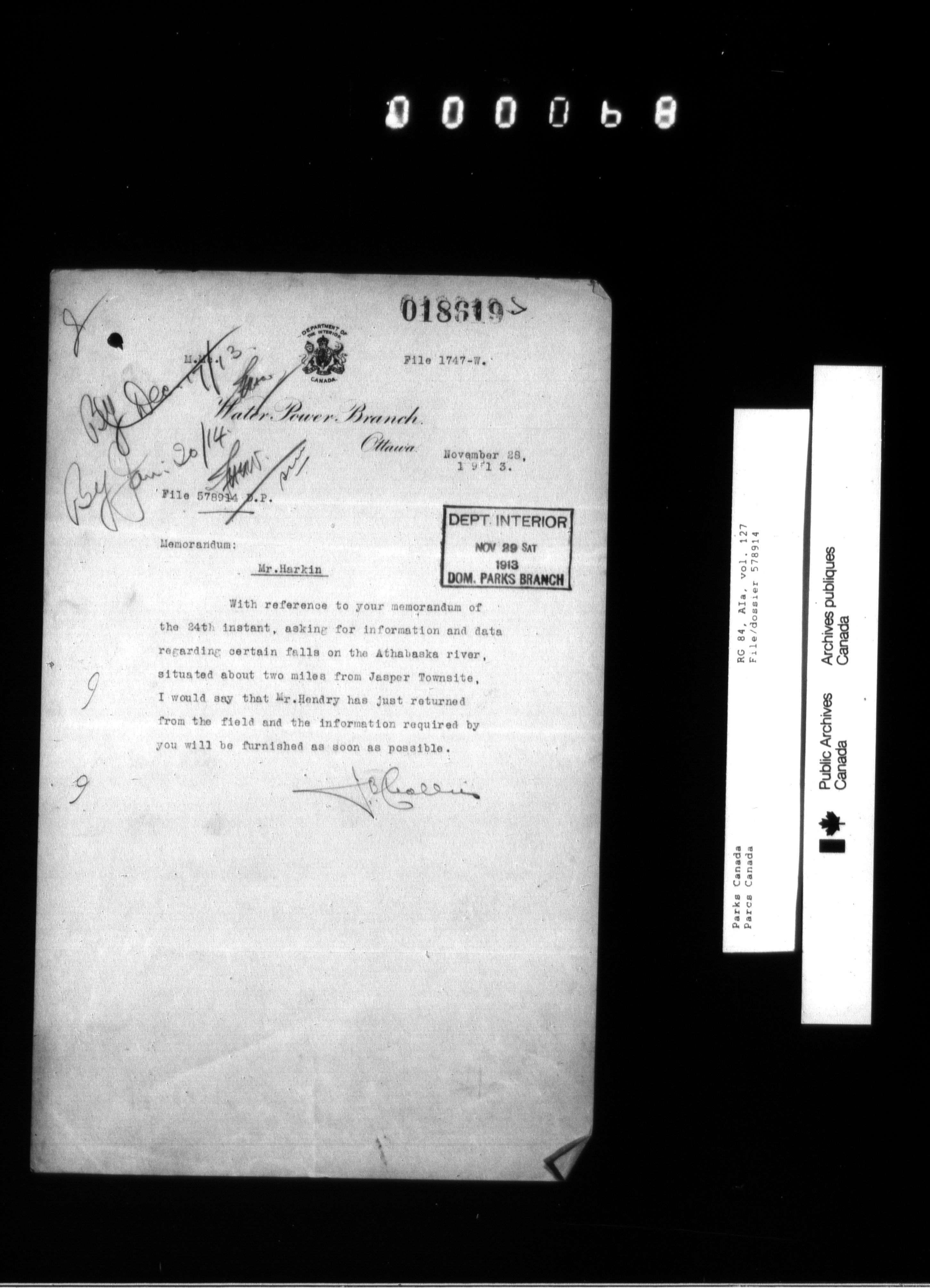Department of Canadian Heritage, Canadian Parks Service : Park/subject classification systemStraight-numeric registry files (1873-1928)Parks Canada : Central Registry Series - 8101