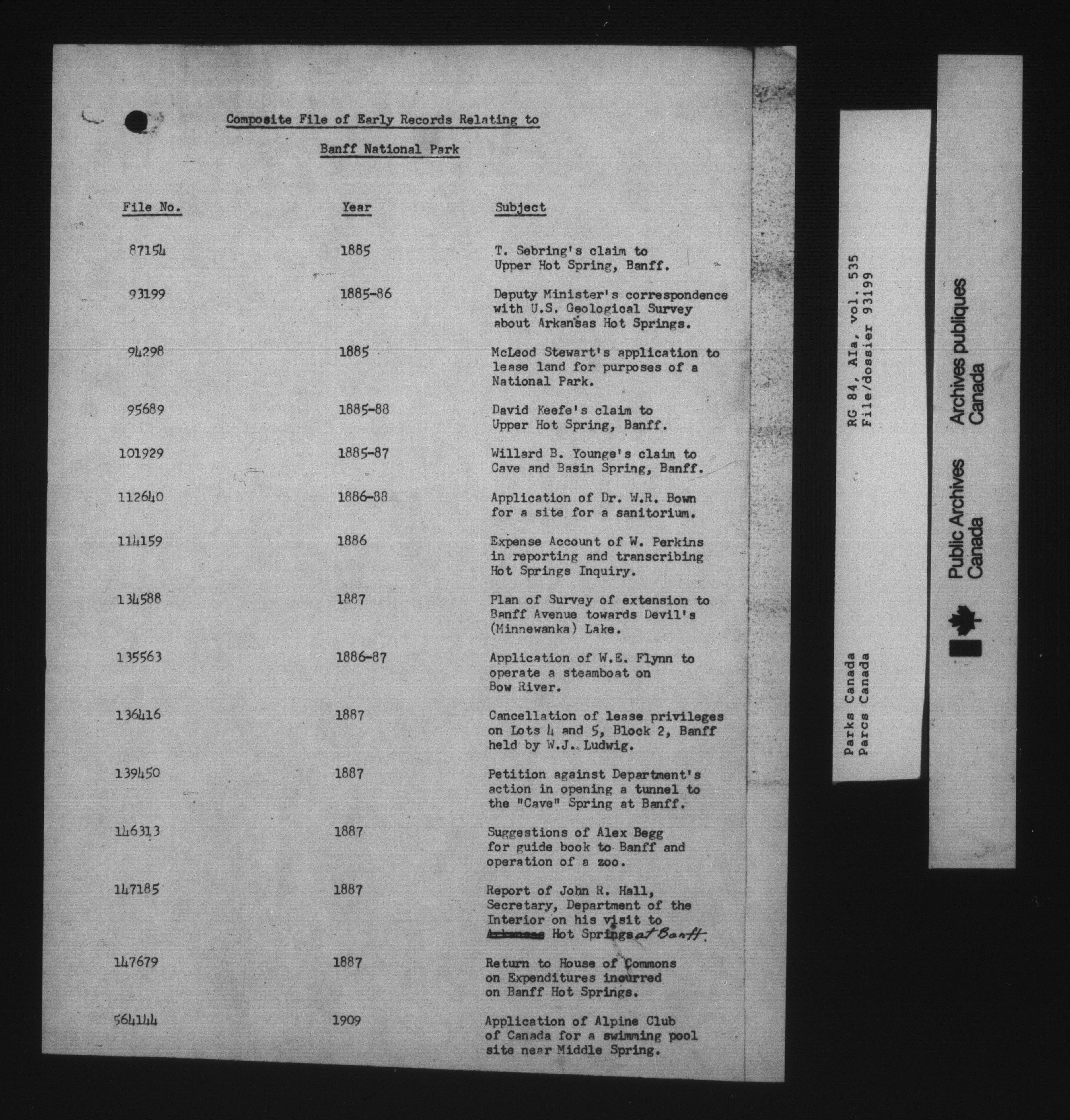 Department of Canadian Heritage, Canadian Parks Service : Park/subject classification system - 8102
