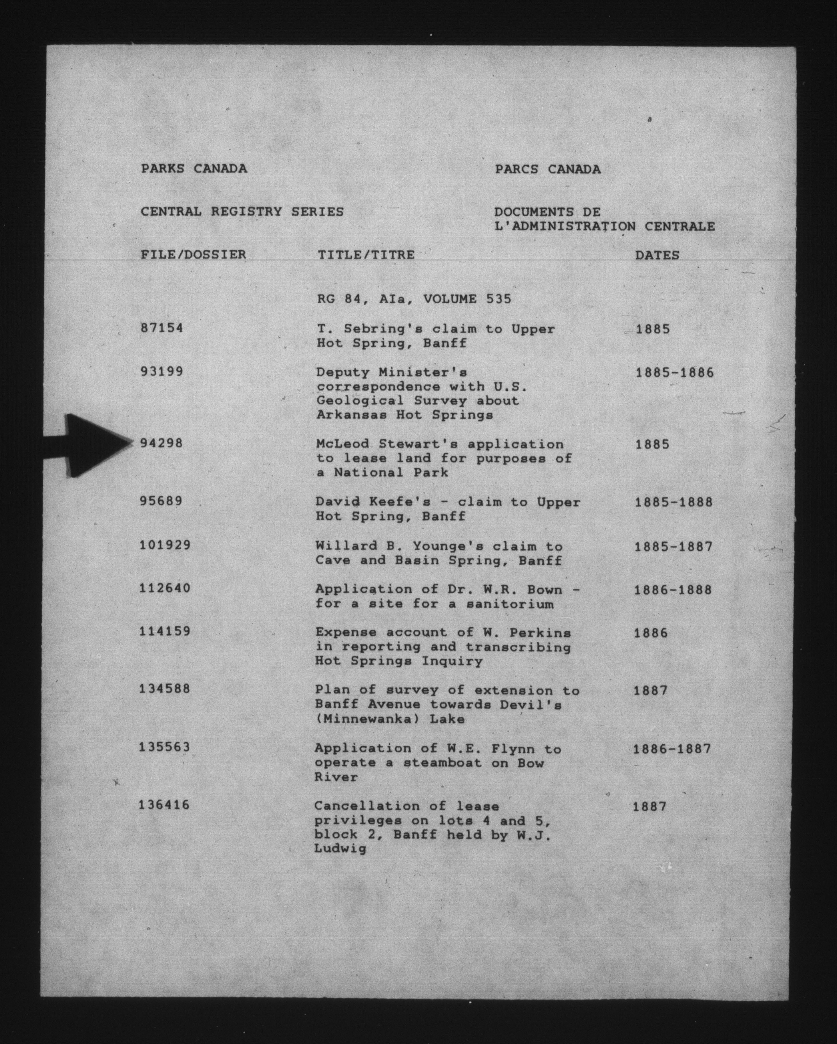 Department of Canadian Heritage, Canadian Parks Service : Park/subject classification system - 8102