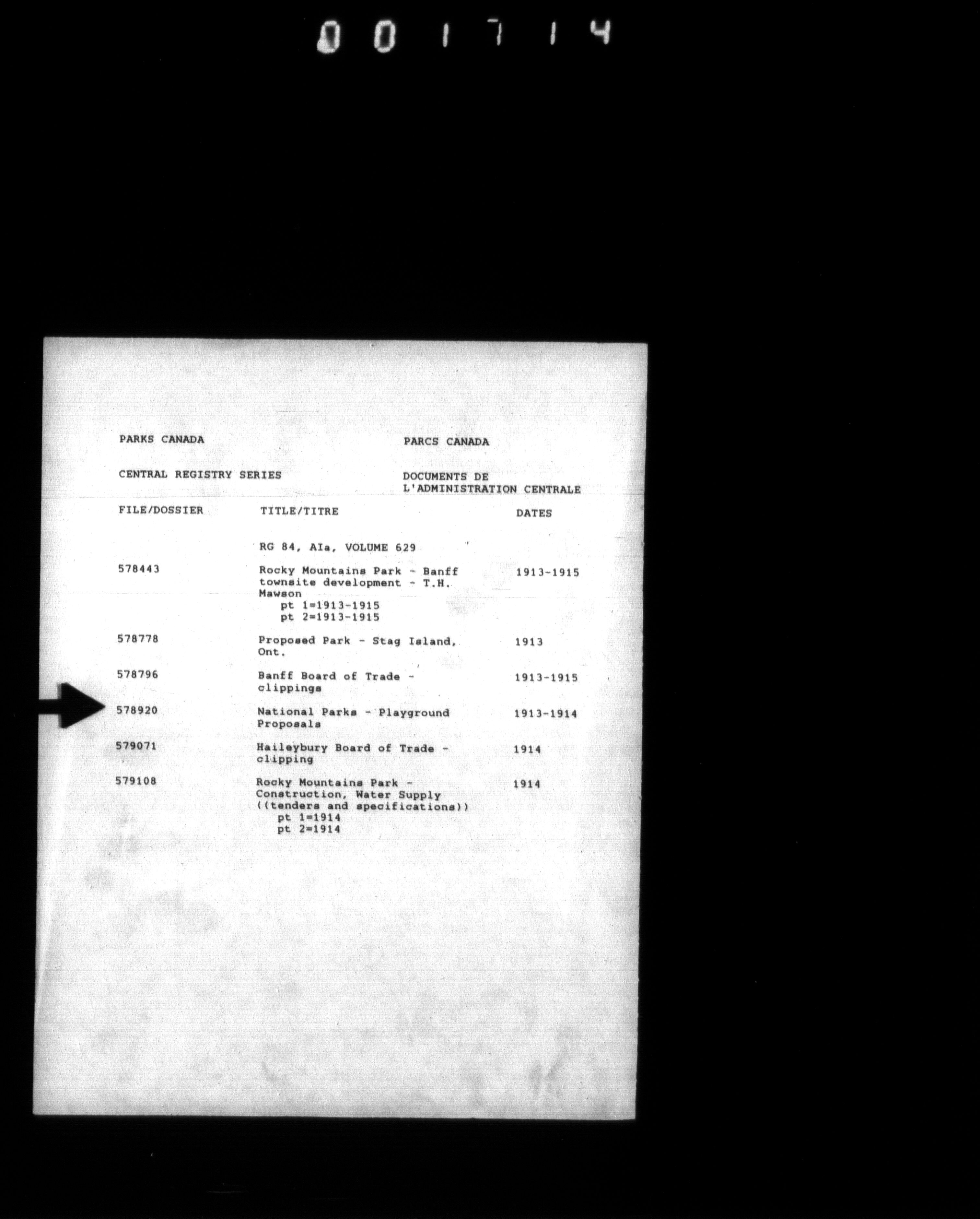 Department of Canadian Heritage, Canadian Parks Service : Park/subject classification system - 8104