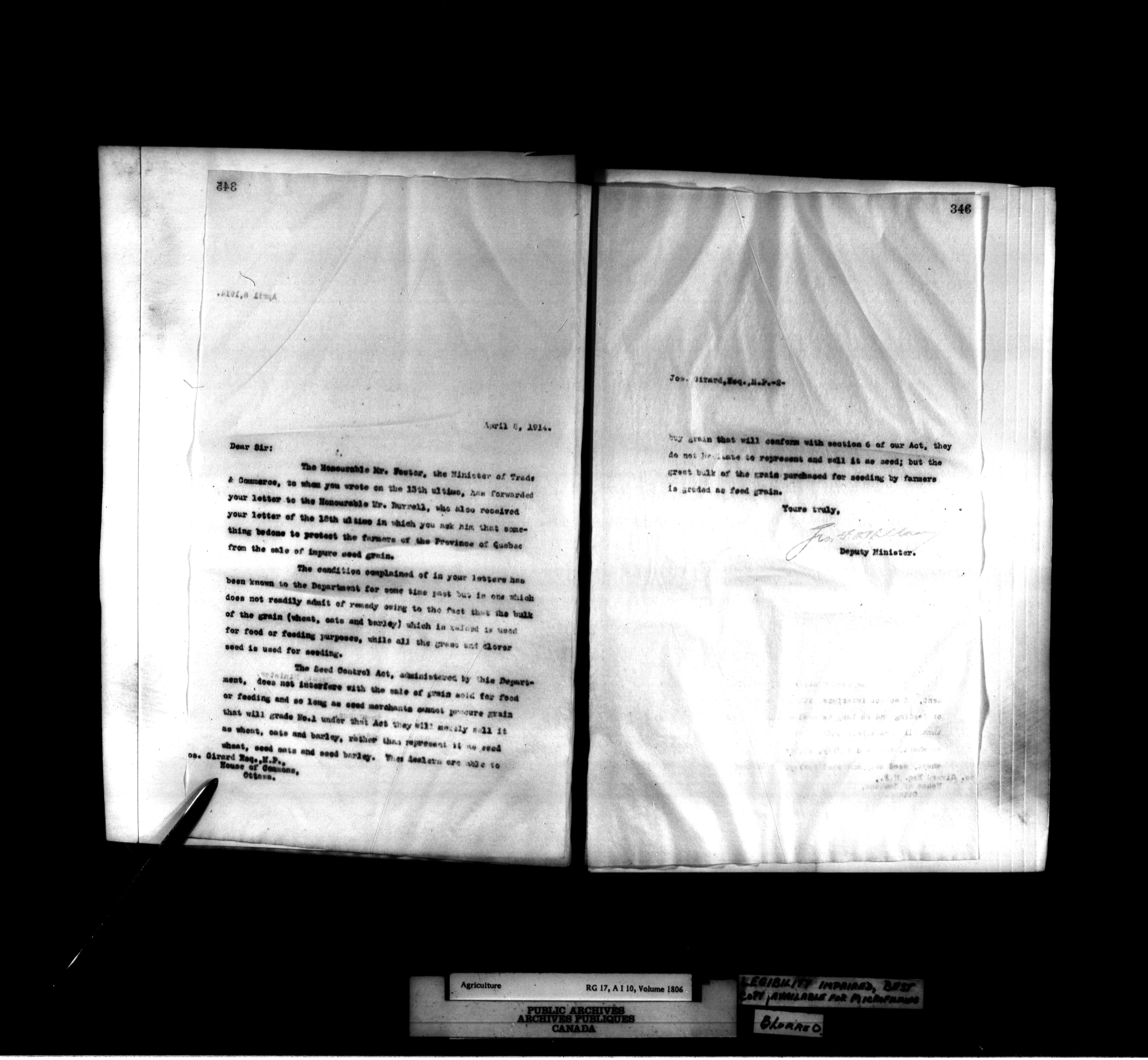 Department of Agriculture: Deputy Minister's letterbooks, 1888-1916 : T-814