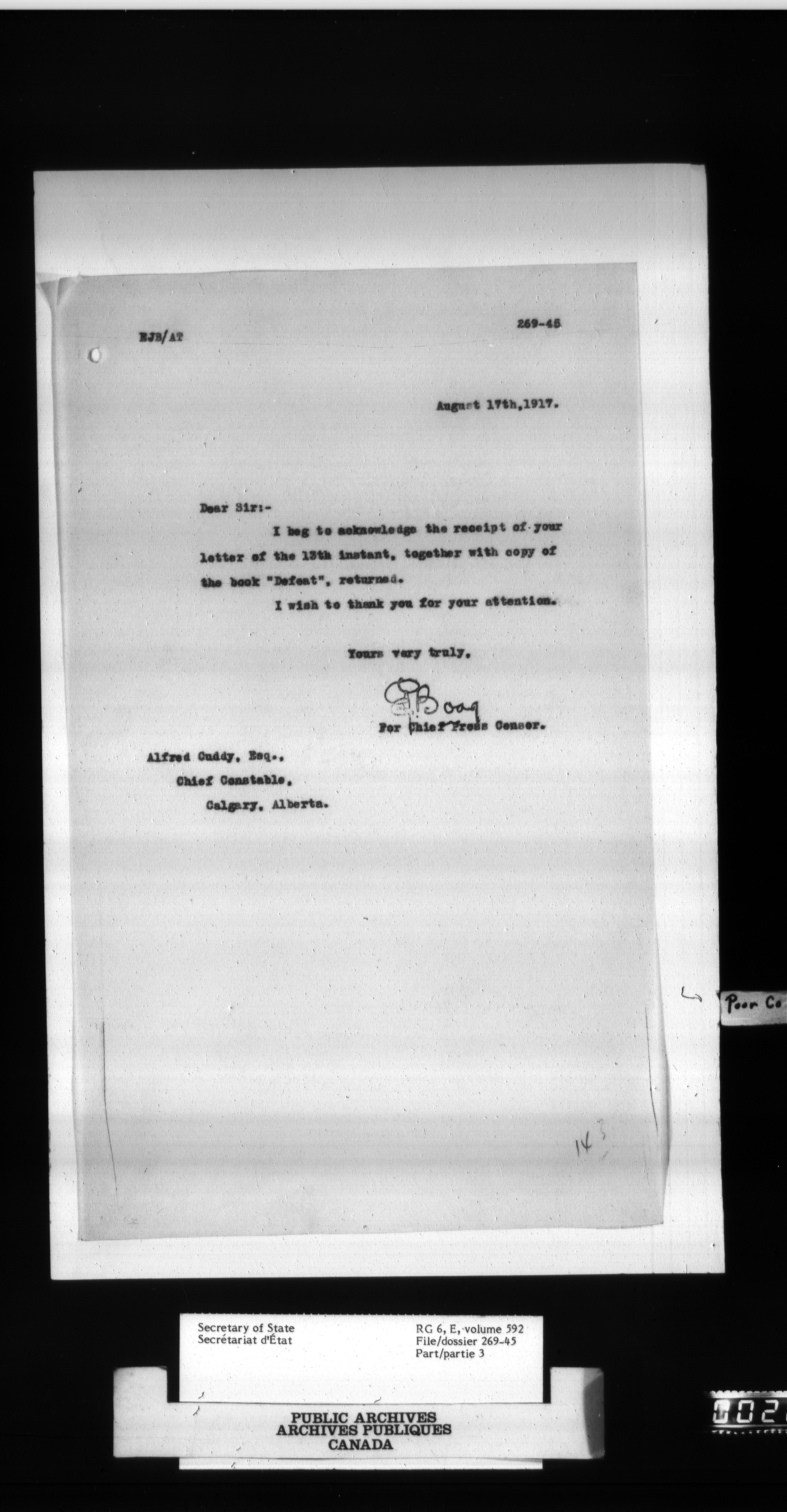 Secretary of State : Chief Press Censor, 1915-1920 - 82
