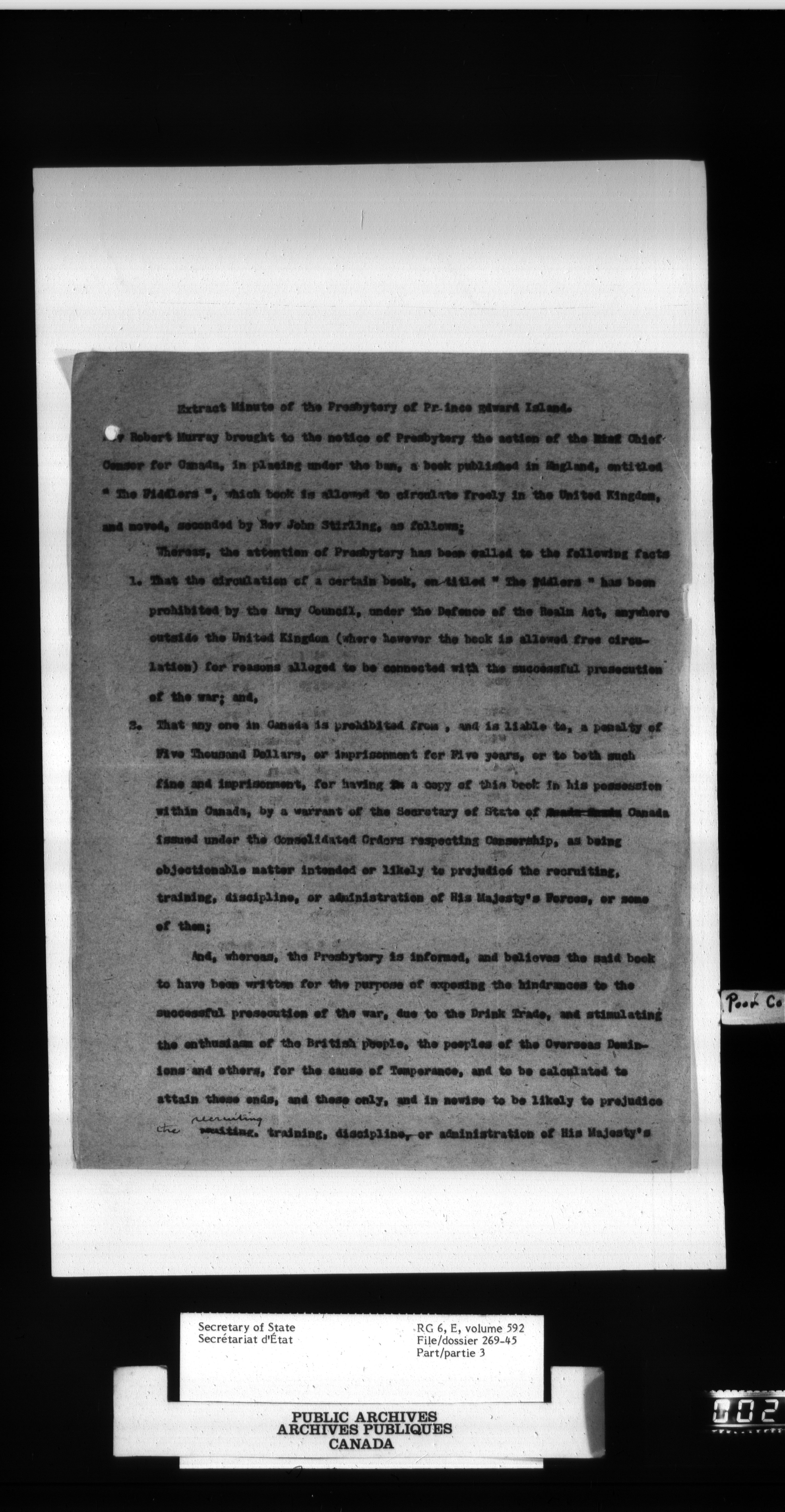 Secretary of State : Chief Press Censor, 1915-1920 - 82