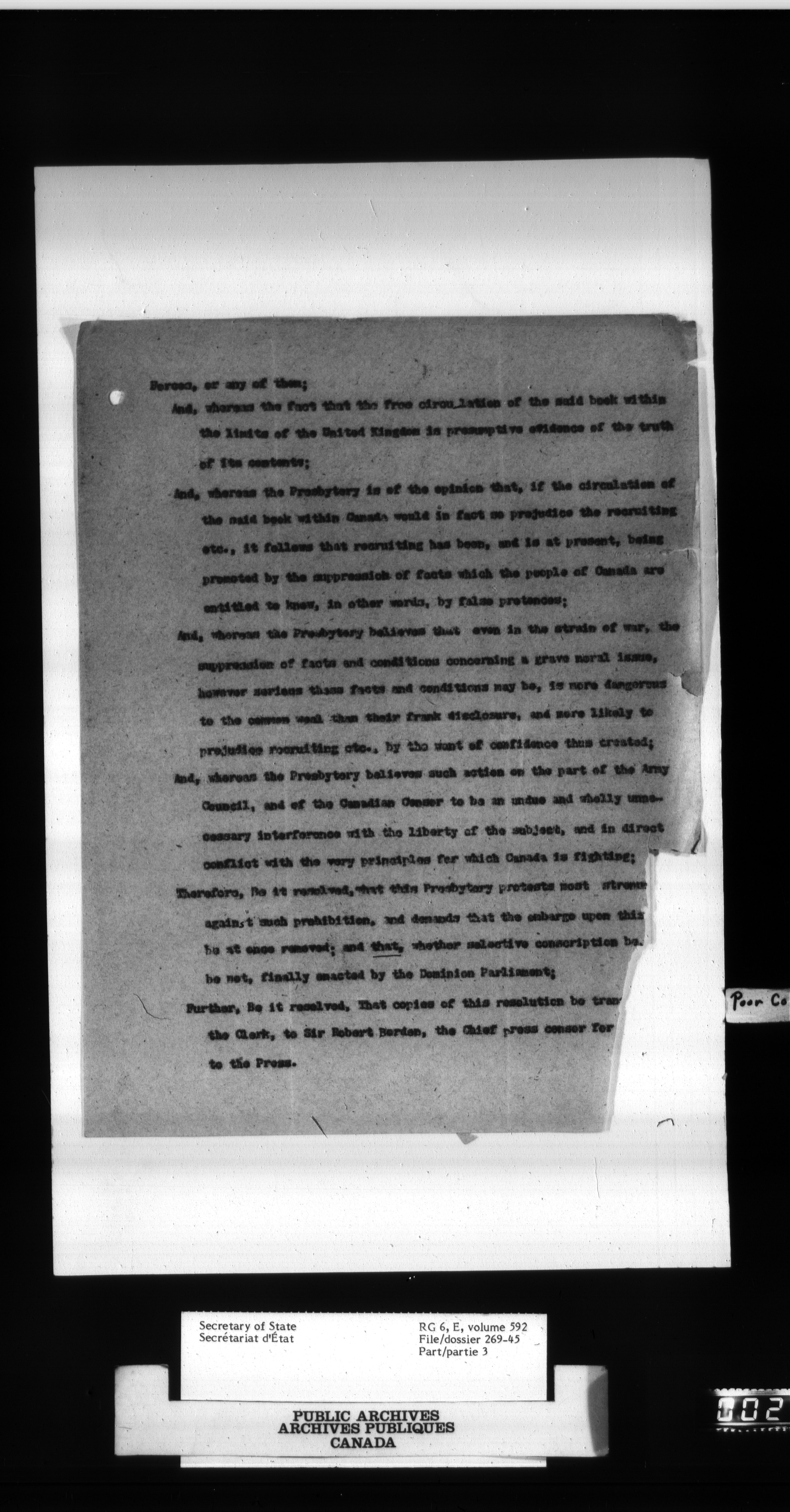 Secretary of State : Chief Press Censor, 1915-1920 - 82