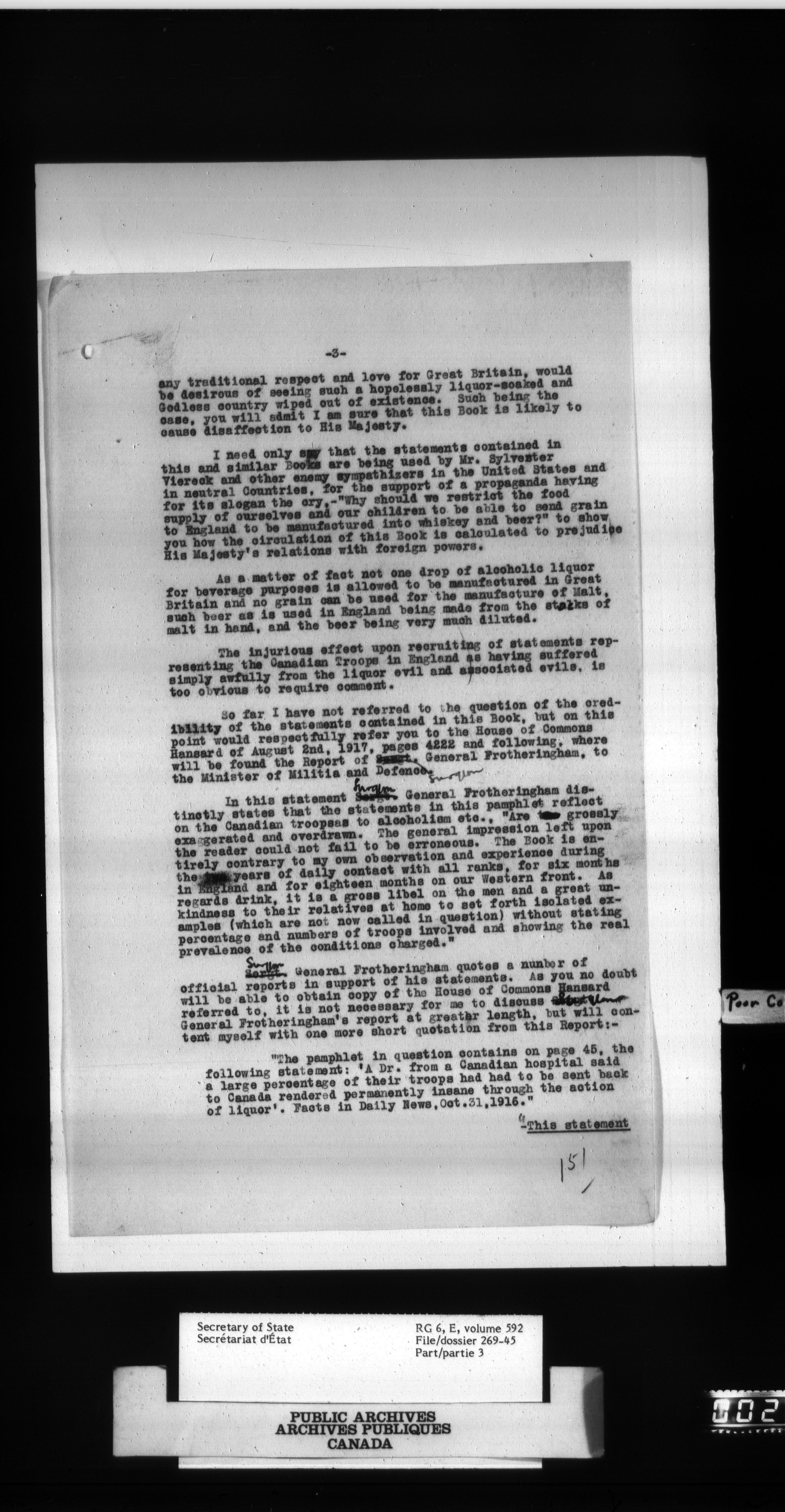 Secretary of State : Chief Press Censor, 1915-1920 - 82