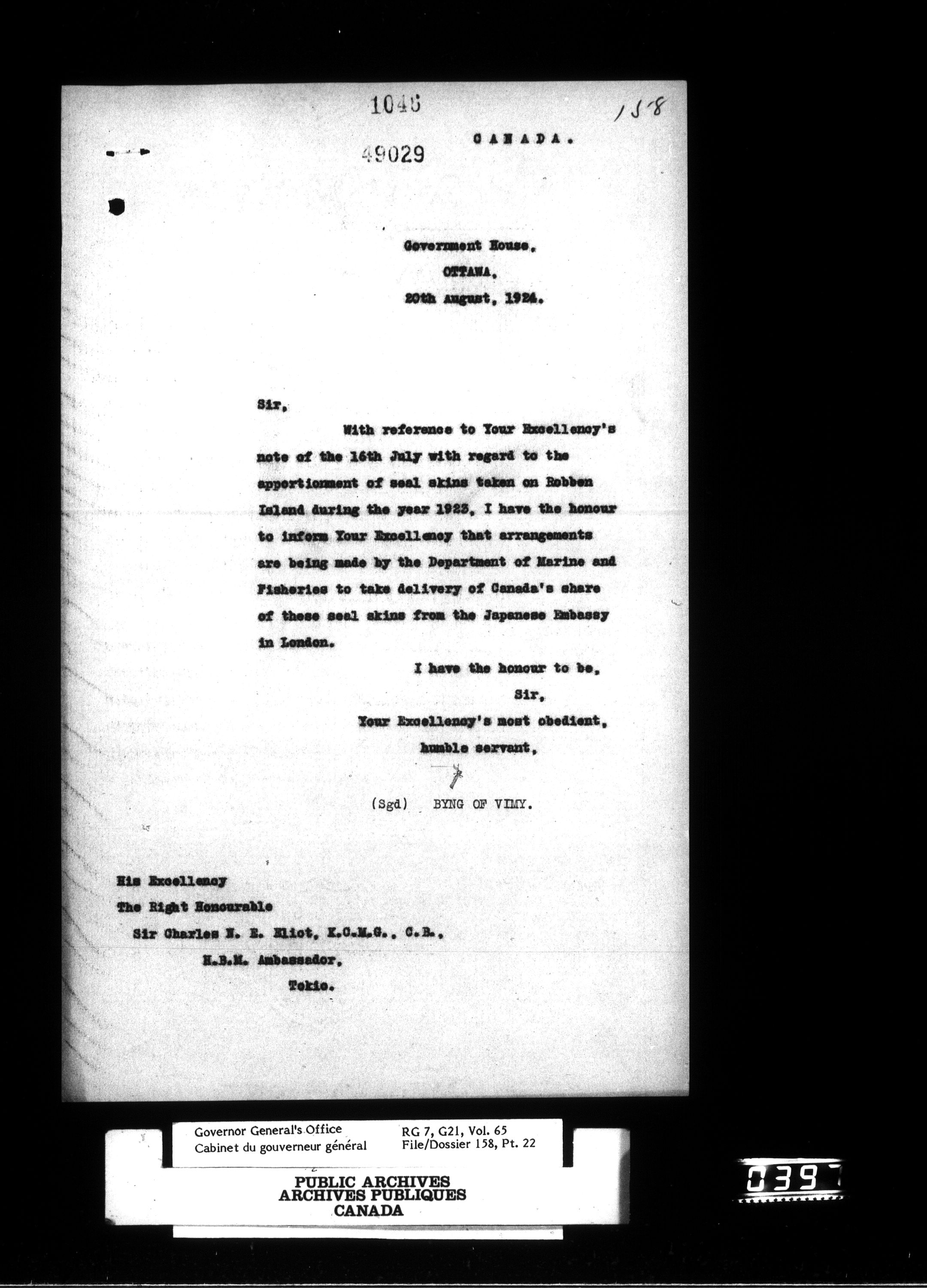 [Governor General] numbered files ; [Gouverneur-générale] dossiers numérotés - T-822